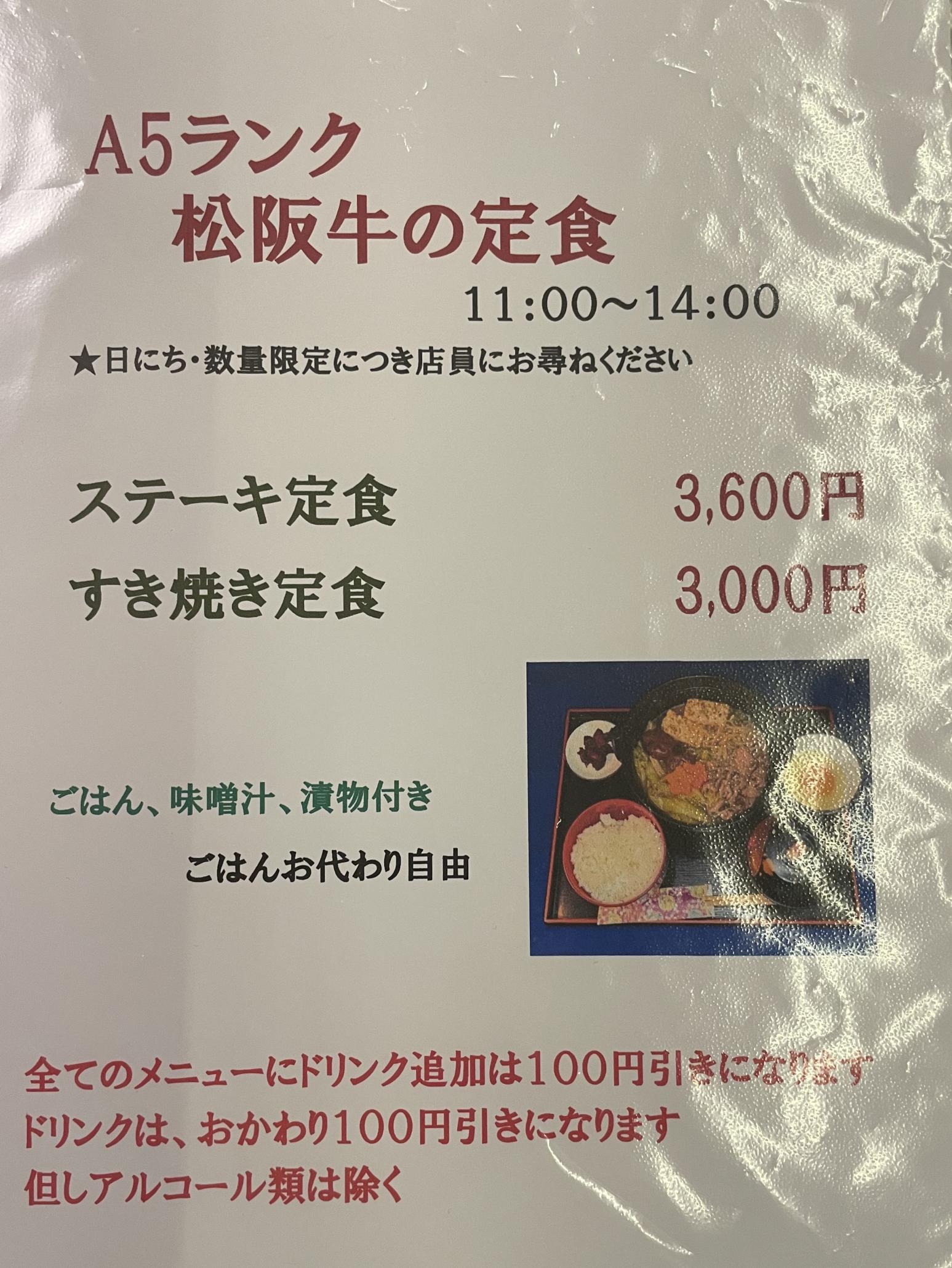 月に数回 A5ランクの松阪牛の特別ランチ