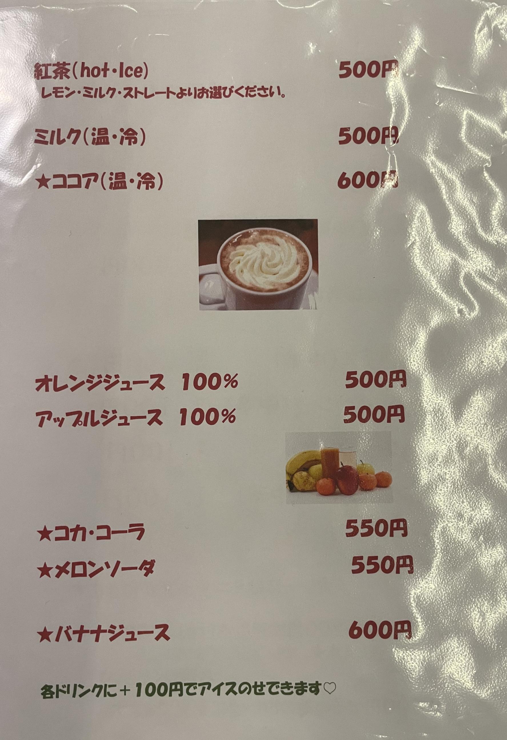 • ドリンク(コーヒー、紅茶、オレンジ、リンゴ、ミルクから)