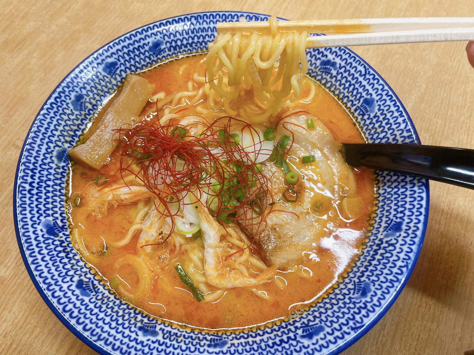 射水と高岡の間、高岡市姫野にあるラーメン店「すたじあむたけ」では「白えび塩らーめん」と「白えび味噌らーめん」の2種類のシロエビラーメンが味わえます。