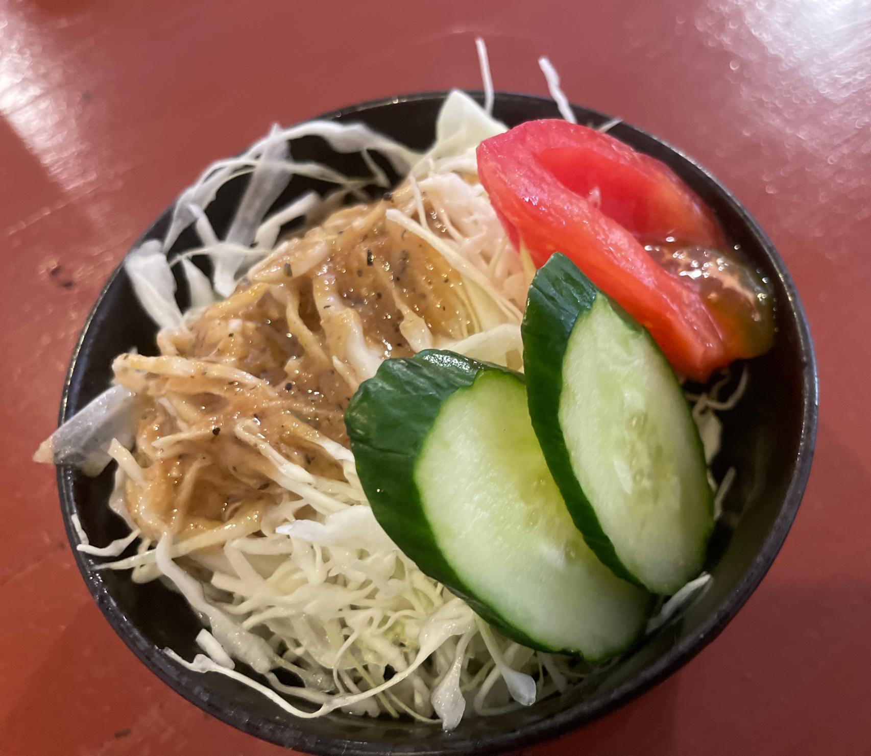 サラダはオリジナルのドレッシング2種から選べます。味噌ドレッシングのコクが美味しくてオススメです。
