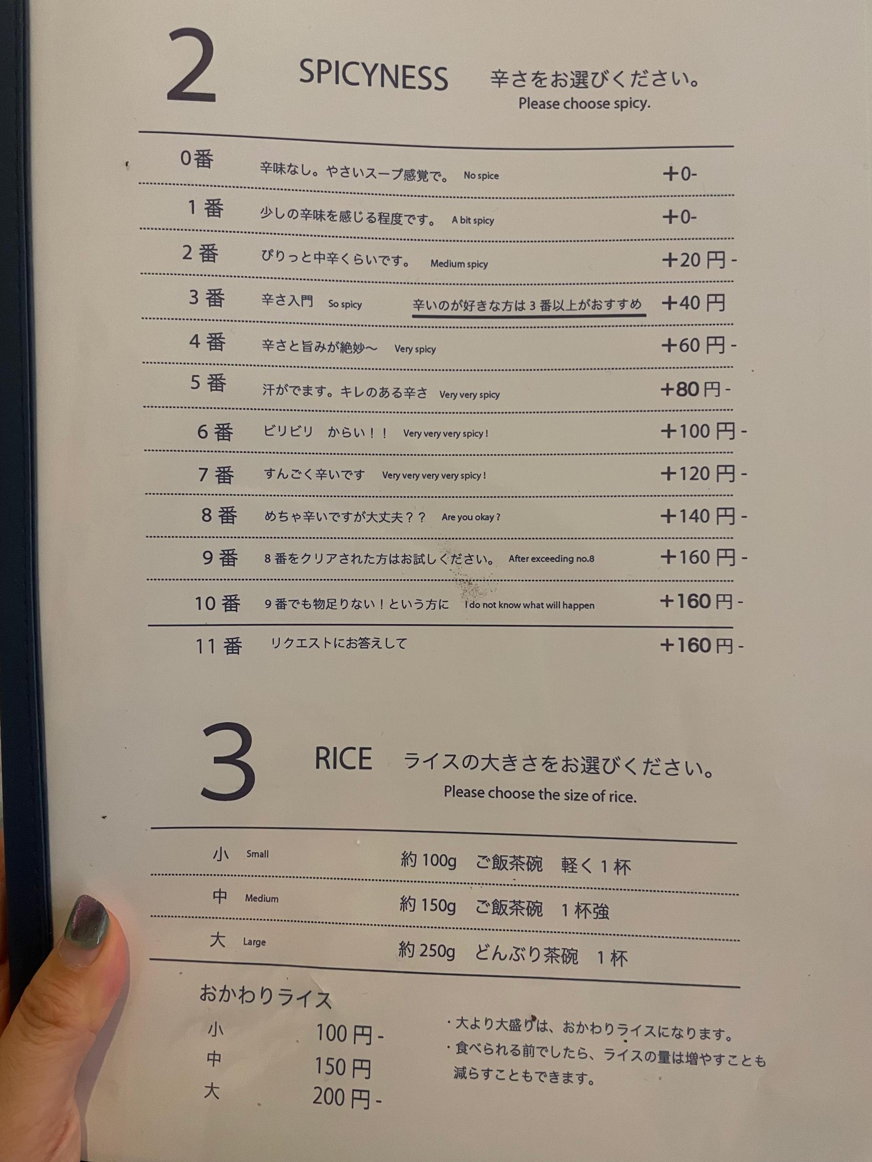 辛さは1~11まで。こんなにカレーの記事を書いていますが、辛さにあまり強くないため1を選びます。