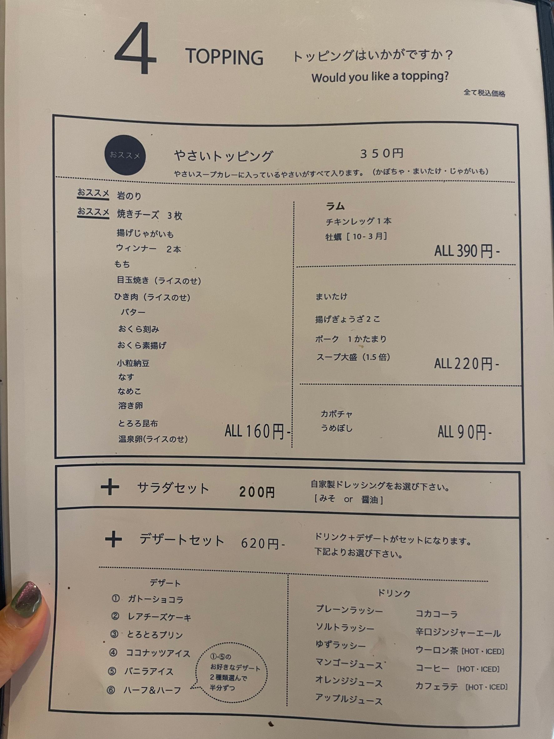 スープカレーの他、スイーツとドリンクを楽しむこともできます。