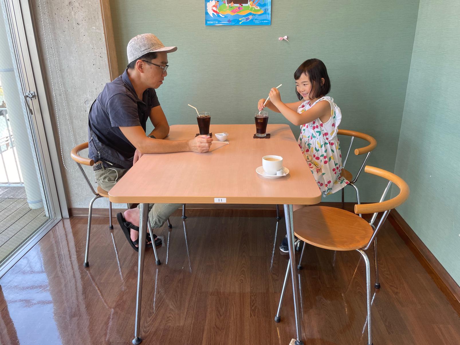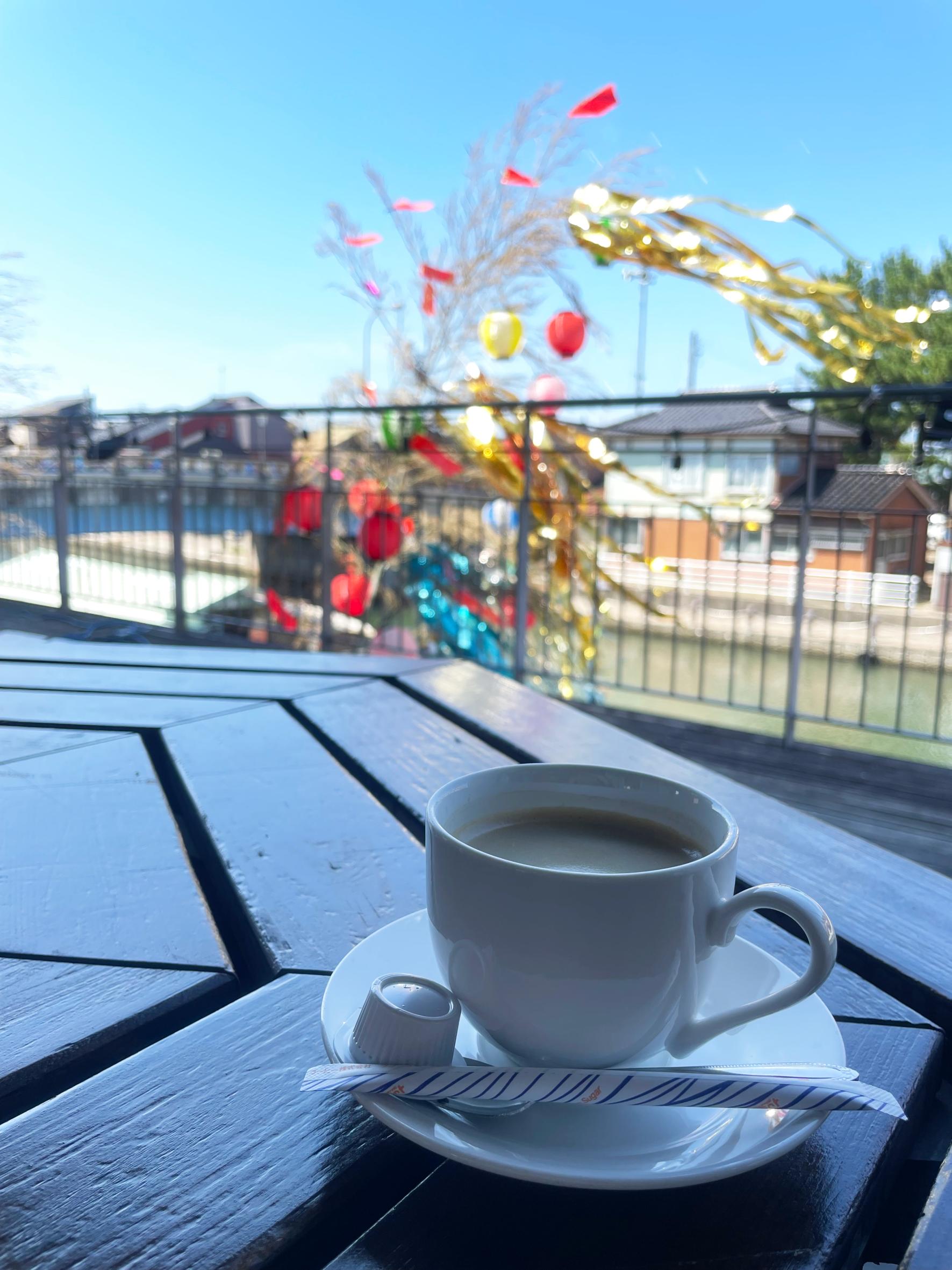 今回のワンドリンクは2階にあるカフェレストランで利用できます。内川の風情感じながらティータイムをお楽しみください。