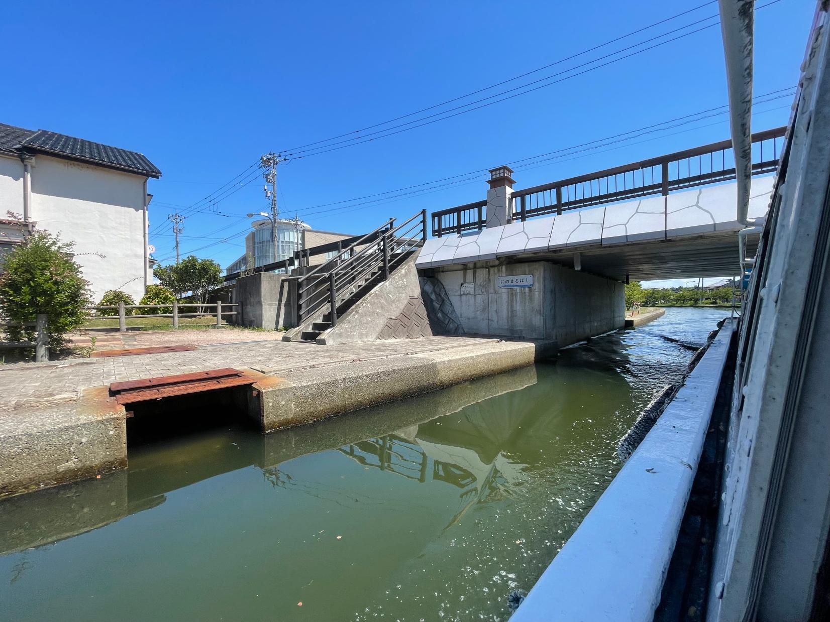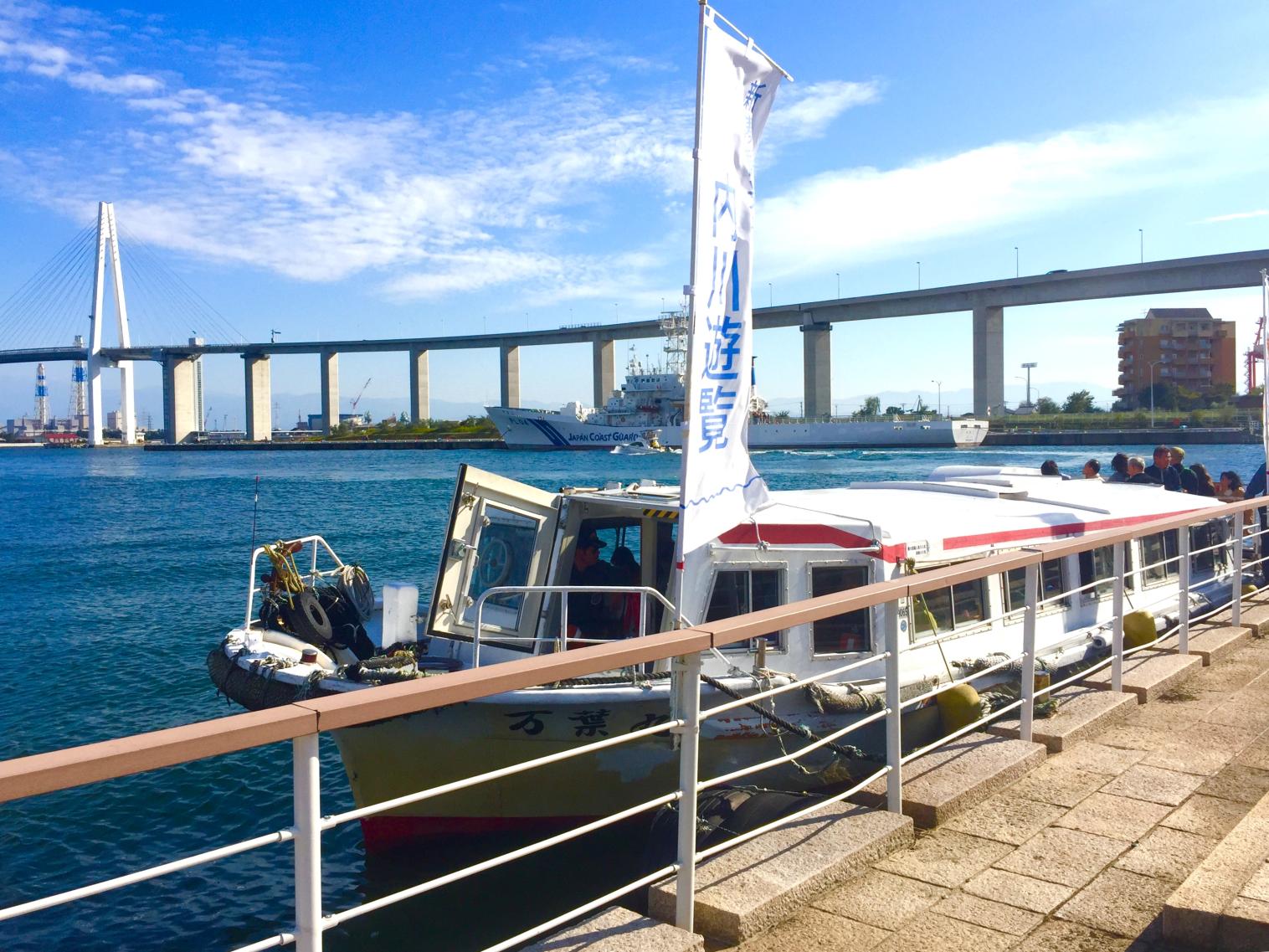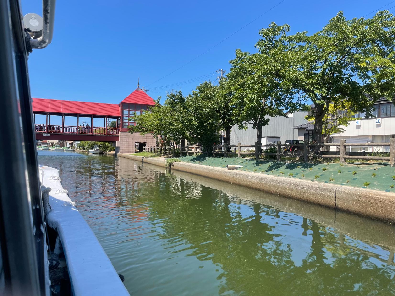 発着は海王丸パーク。海王丸パークから新湊地区を西へ流れる川、日本のベニス・内川にある「川の駅 新湊」に向かいます。