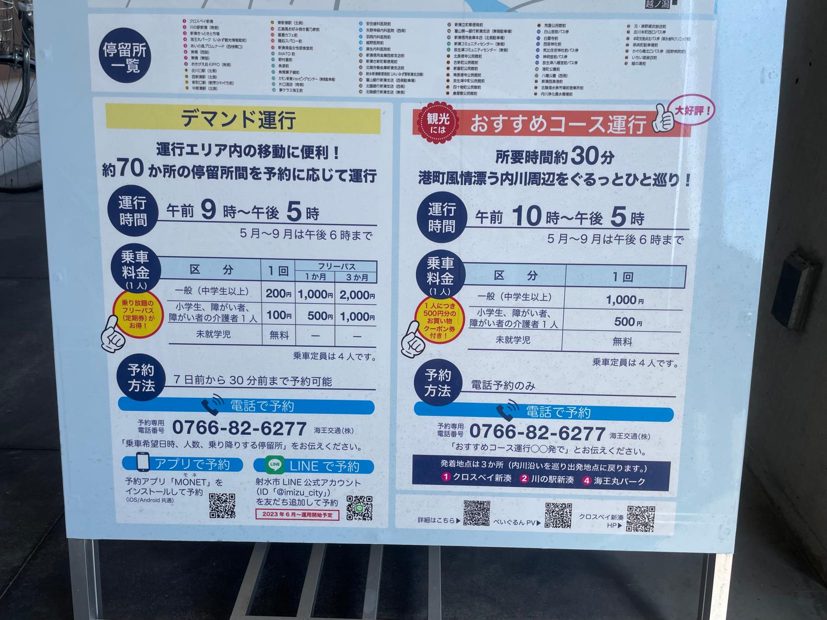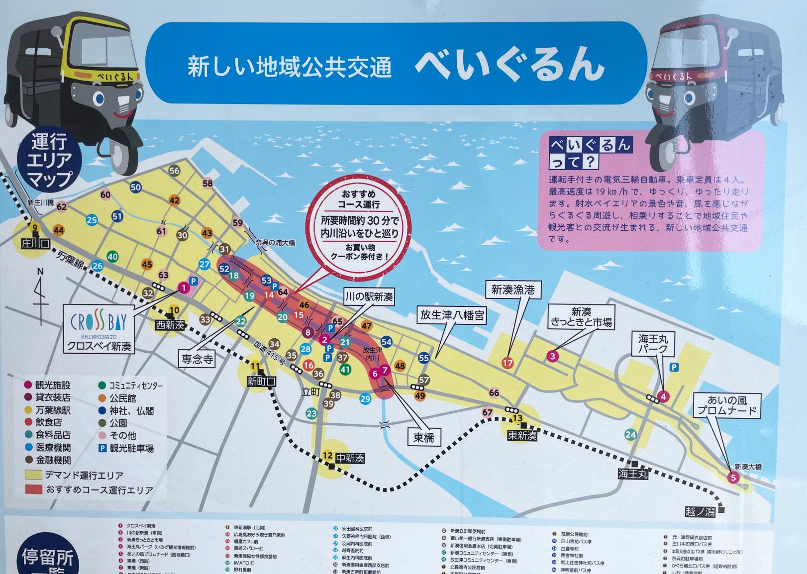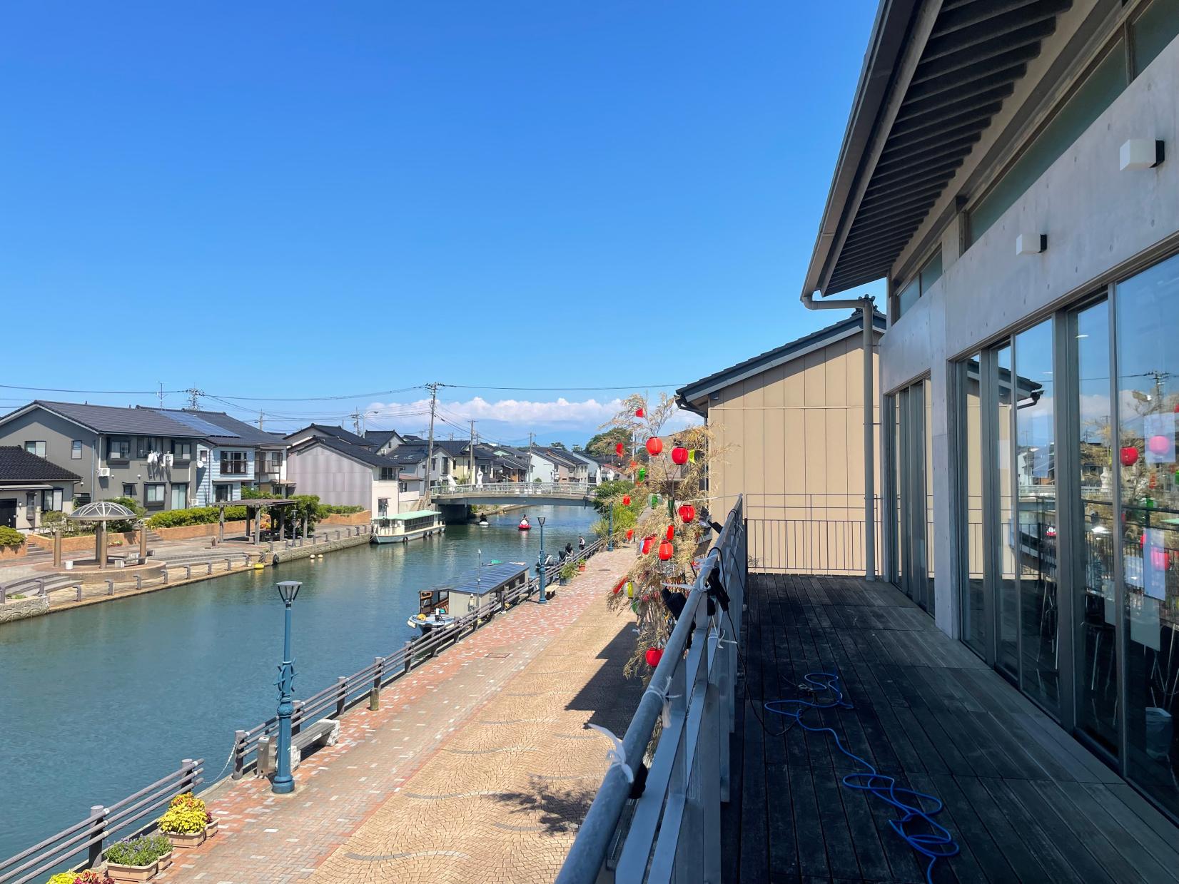 発着は海王丸パーク。海王丸パークから新湊地区を西へ流れる川、日本のベニス・内川にある「川の駅 新湊」に向かいます。