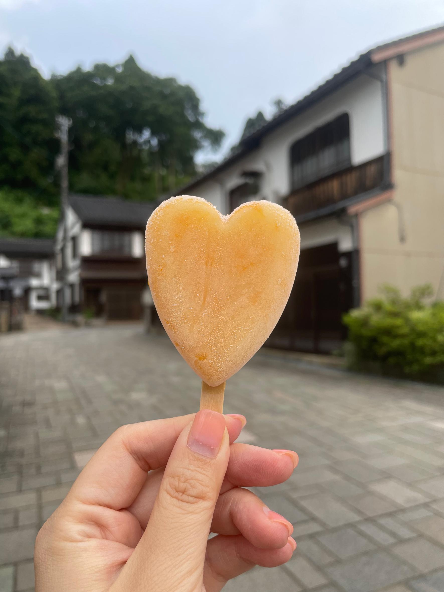 「餅 愛す」は葛粉で作った皮でサッパリとしたフルーツのアイスを包んだモチモチのアイスキャンデー。見た目もハート型でとってもキュートです。