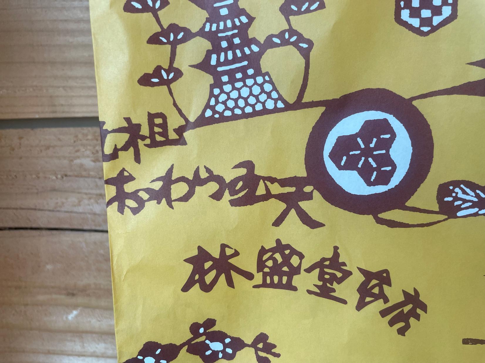 同店ののれんや看板、パッケージは、「桂樹舎」創始者 吉田桂介が手掛けたものも。桂樹舎ならではの型染めの美しさがお菓子にも活かされ続けています。