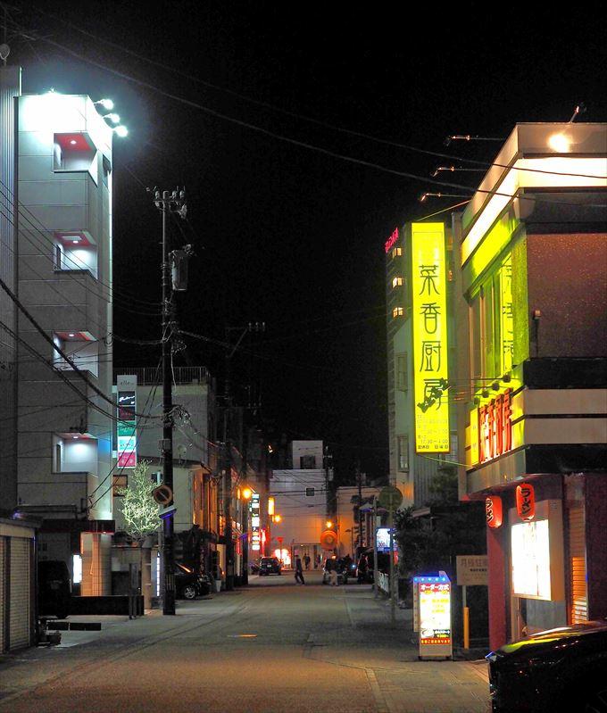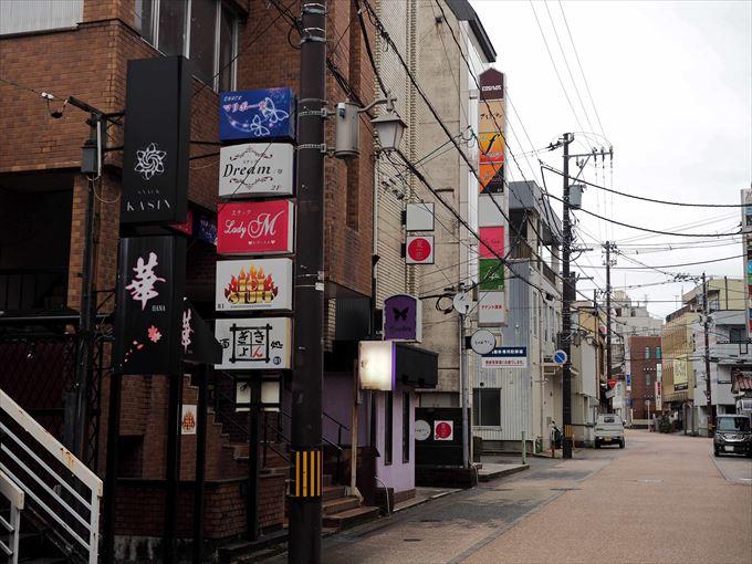 ビルが立ち並び、飲食店の看板やネオンがひしめく様は富山市の桜木町を思わせる雰囲気があります。