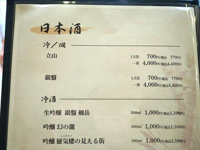 1.5合というのは珍しい単位ですが一般的には1合で700円というお店が多く、さらに300mlで1,000円というのもすごく良心的な価格だと思います。