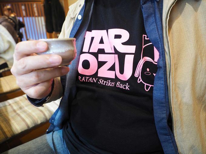 買いたてホヤホヤのSTAR UOZUのミラたんコラボバージョンのTシャツを着てご満悦のヒロシ。