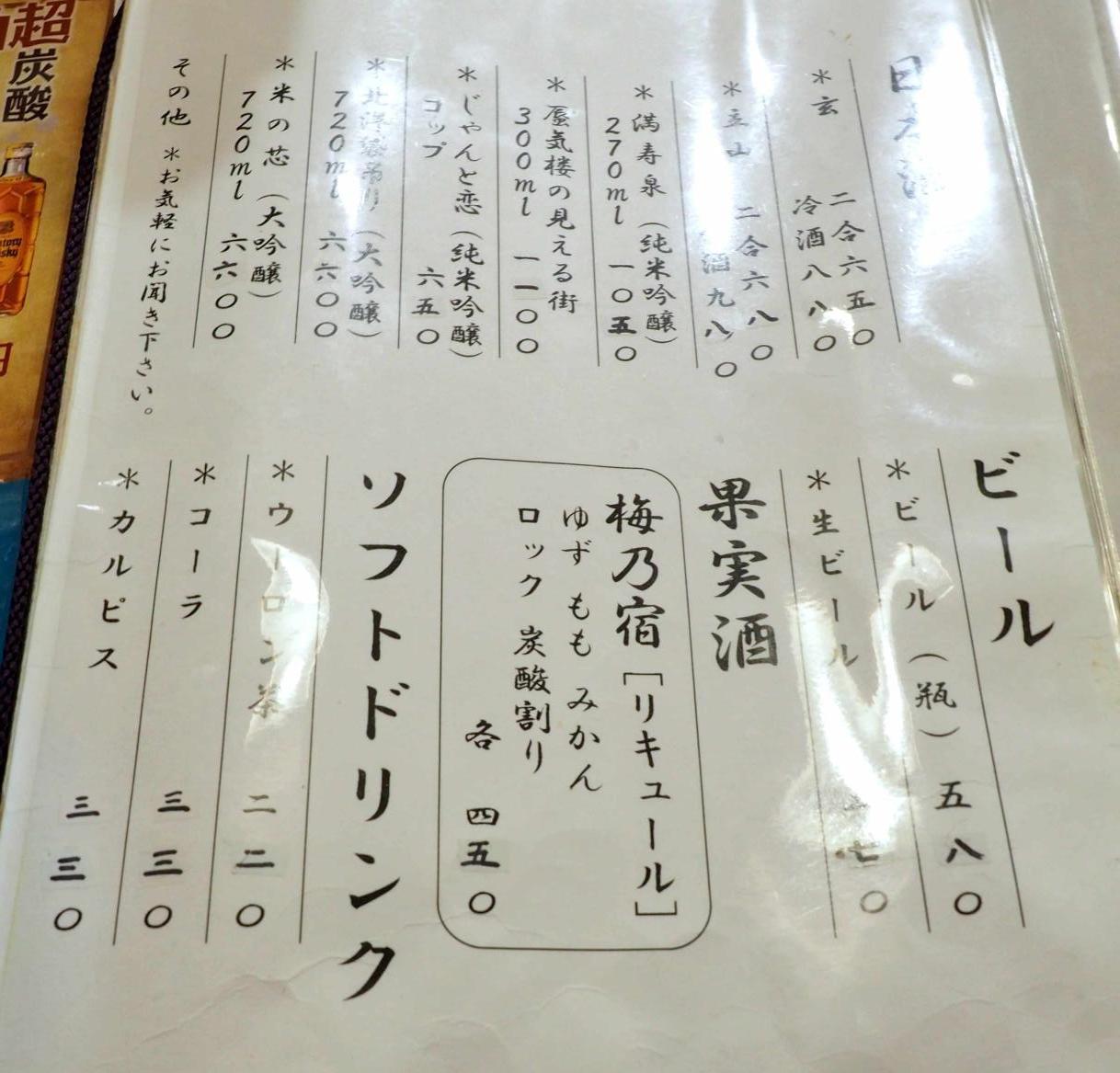 日本酒が二合で650円からということで、こちらのお店も日本酒がとっても良心的な価格ですね。