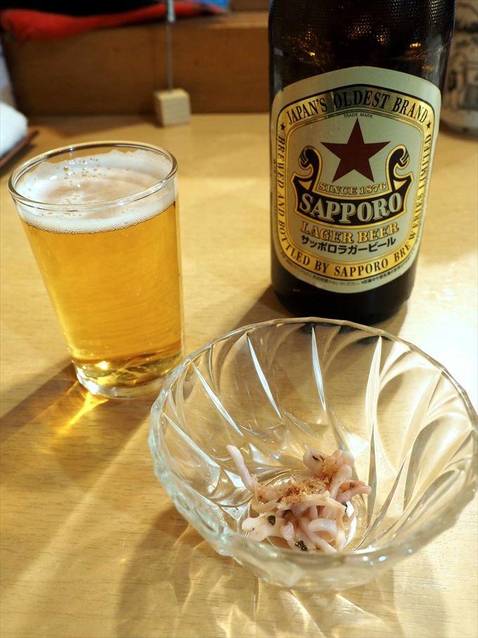 付き出しがイカとはまた渋い・・・。酢がきいていて思わず日本酒が飲みたくなる味付けです。
