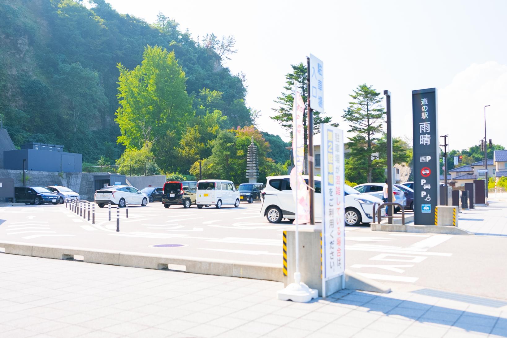 駐車場は道の駅「雨晴」の左右に二箇所隣接されており、身障者駐車場合わせ39台駐車できます。