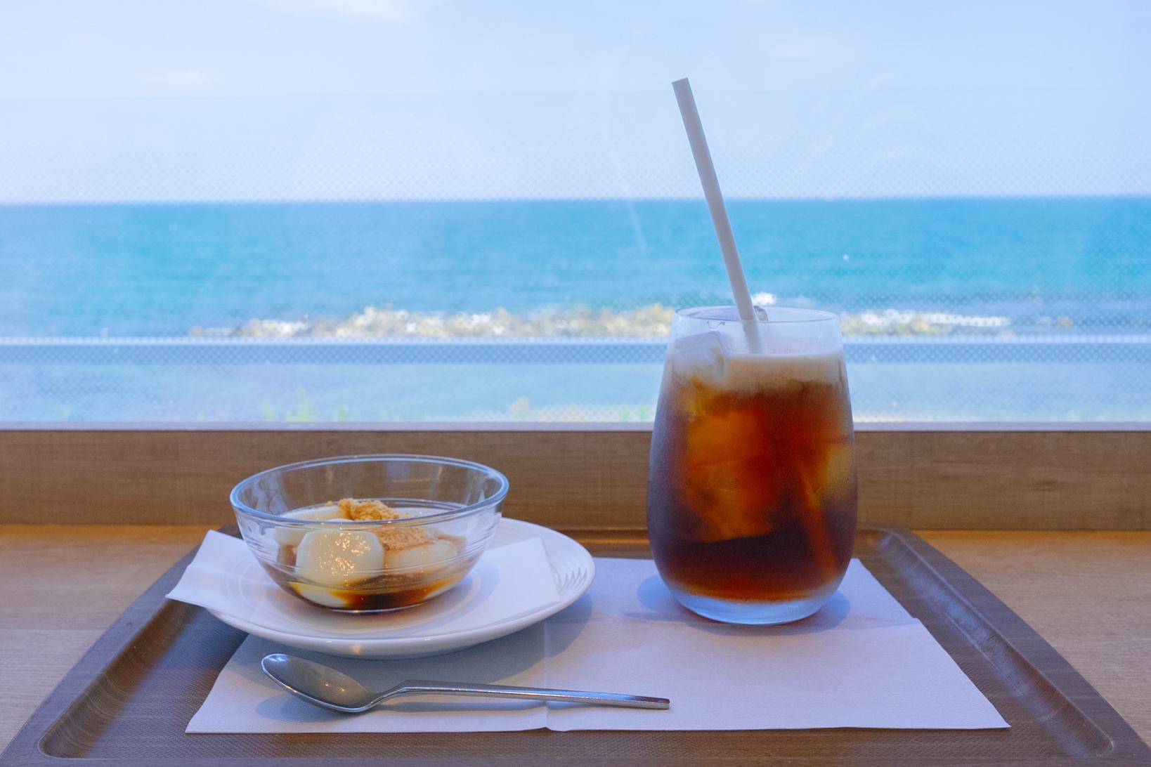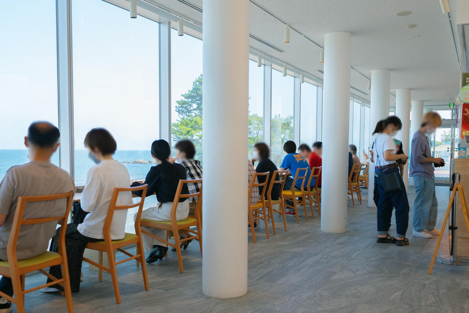 道の駅「雨晴」の2Fには、雨晴海岸を眺めながら食事やカフェを楽しめる、「Cafe ISOMI TERRACE」があり、この日も景観が素晴らしいカウンター席はいっぱいでした。