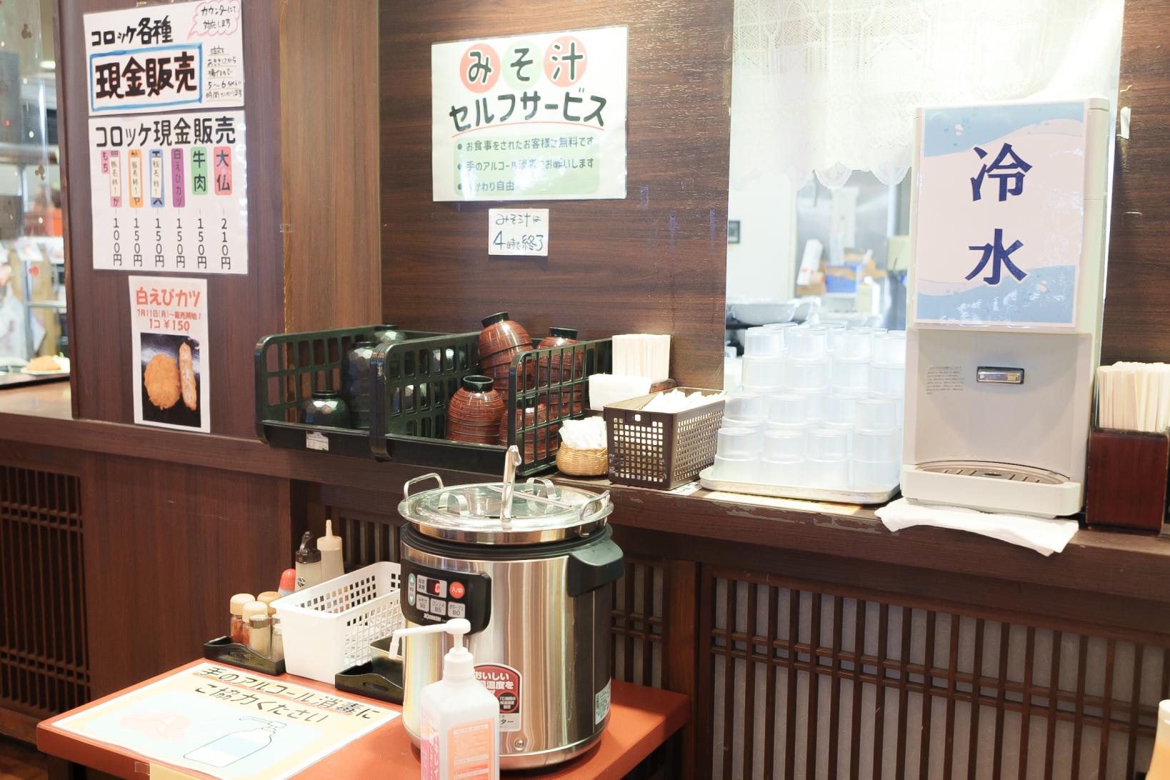 こちらのフードコートでは、食事をするとセルフサービスにて味噌汁のおかわりが自由になります!
