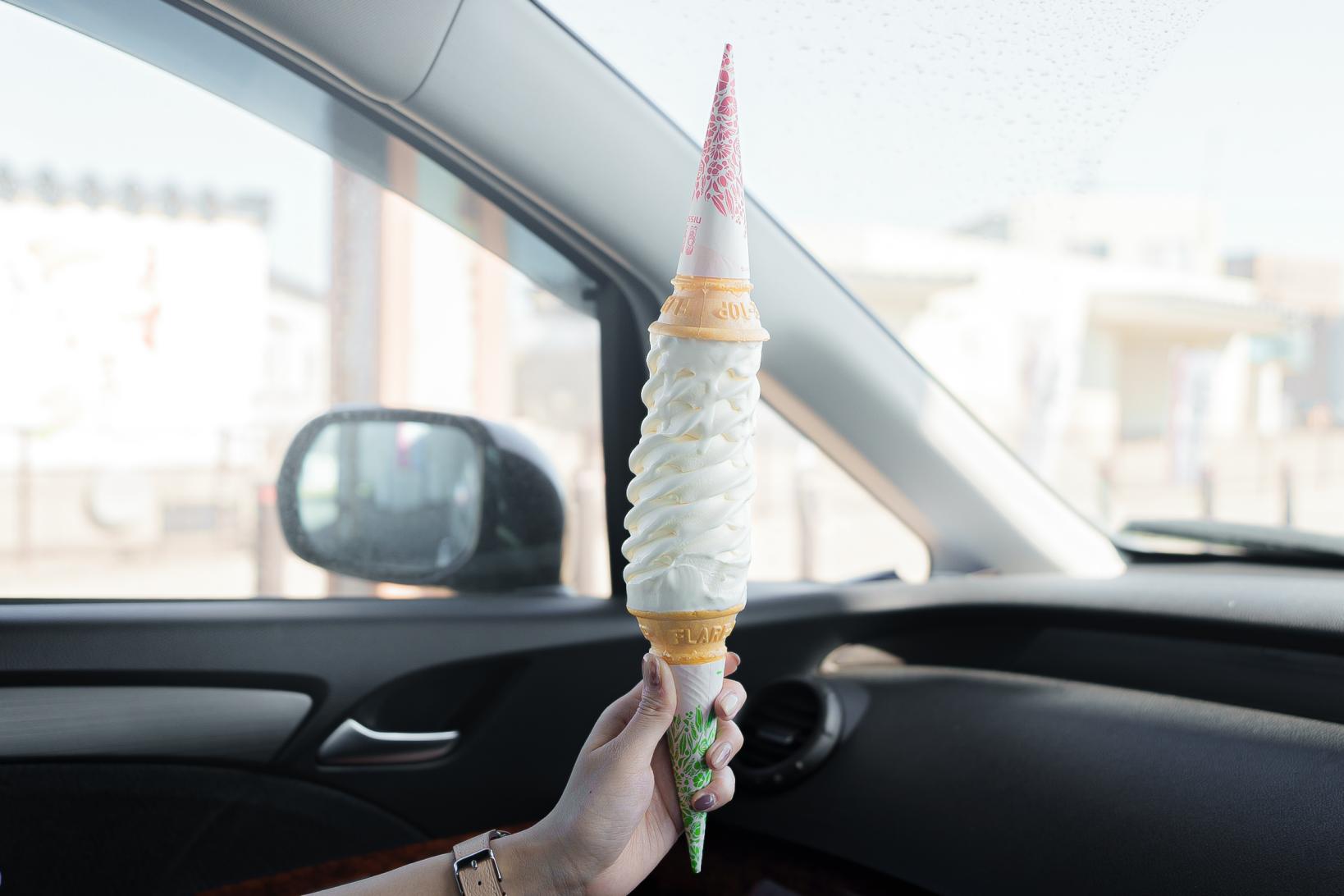 平和観音像にちなみ、高さ30㎝の十段ソフトクリームで、この日も沢山の方が買いに訪れていました。