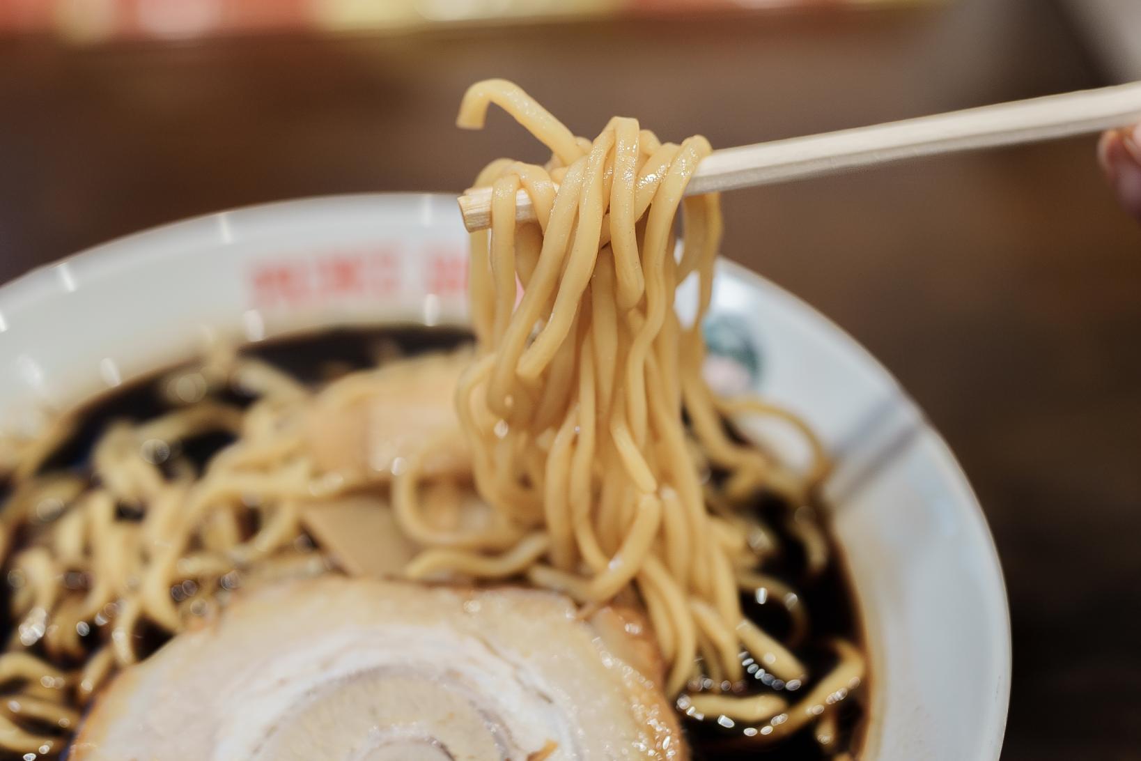富山ブラックでは珍しい細麺を使用しており、あっさりでキリッとしたスープにとてもよく合います!