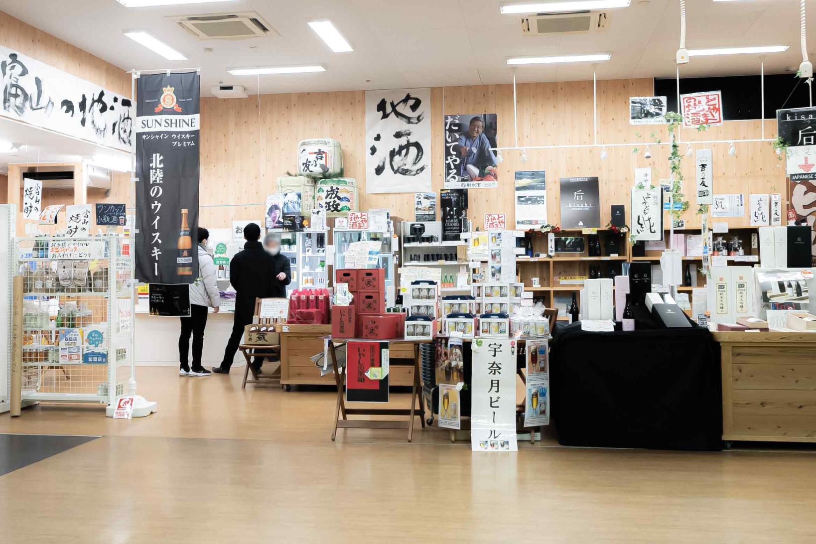 館内はとても広く、特産品コーナーや富山の地酒などが購入できるお店もあり、飲食スペースも用意されています。