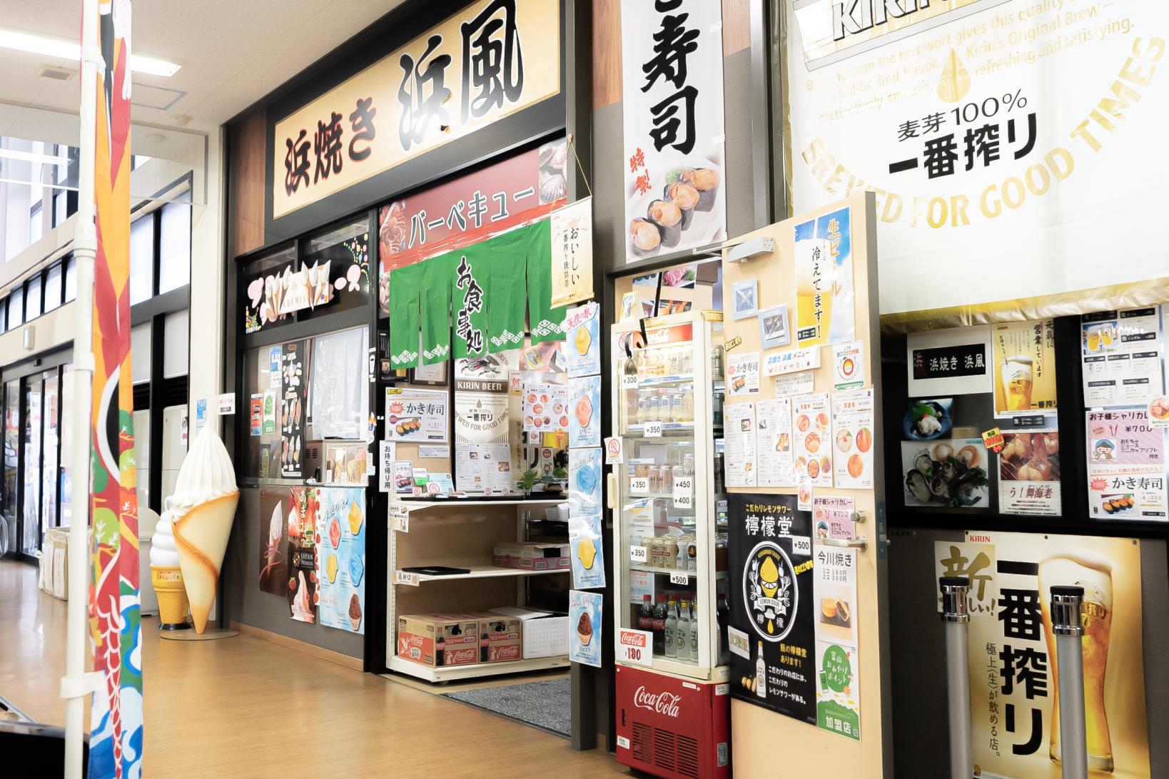 館内にある「浜焼き 浜風」は、浜焼きや海鮮丼などを食べることができるお店です。
