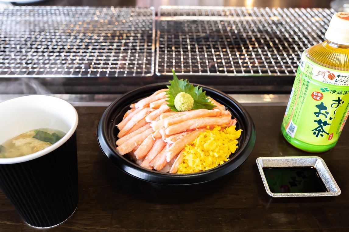 浜焼き以外にも海鮮丼を楽しむことができ、蟹丼も注文してみました!ご飯の量が少なめですが、蟹がこれでもか、というくらいに乗っています!
