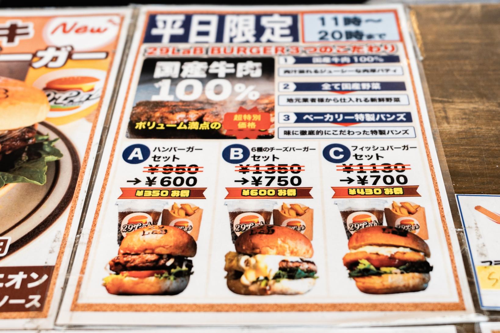 「29LaB BURGER」の魅力の一つである、平日限定のランチメニュー!