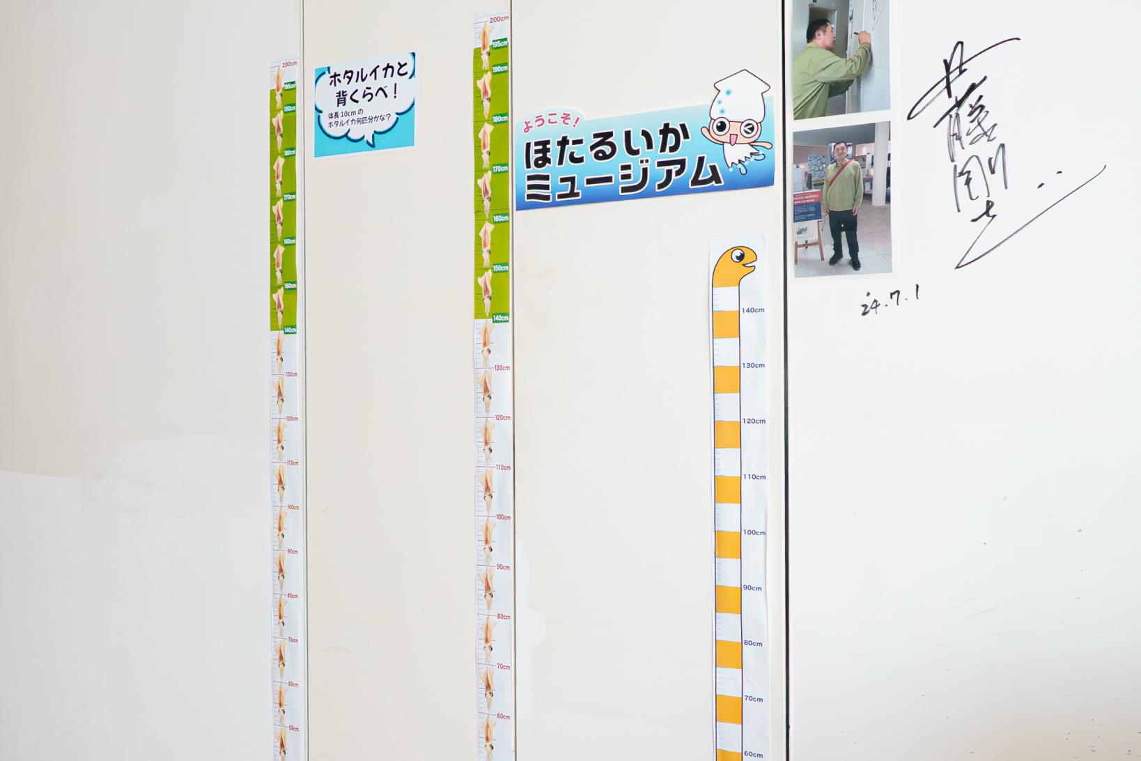 入り口には、ホタルイカ・チンアナゴと背くらべができるコーナーがありました!