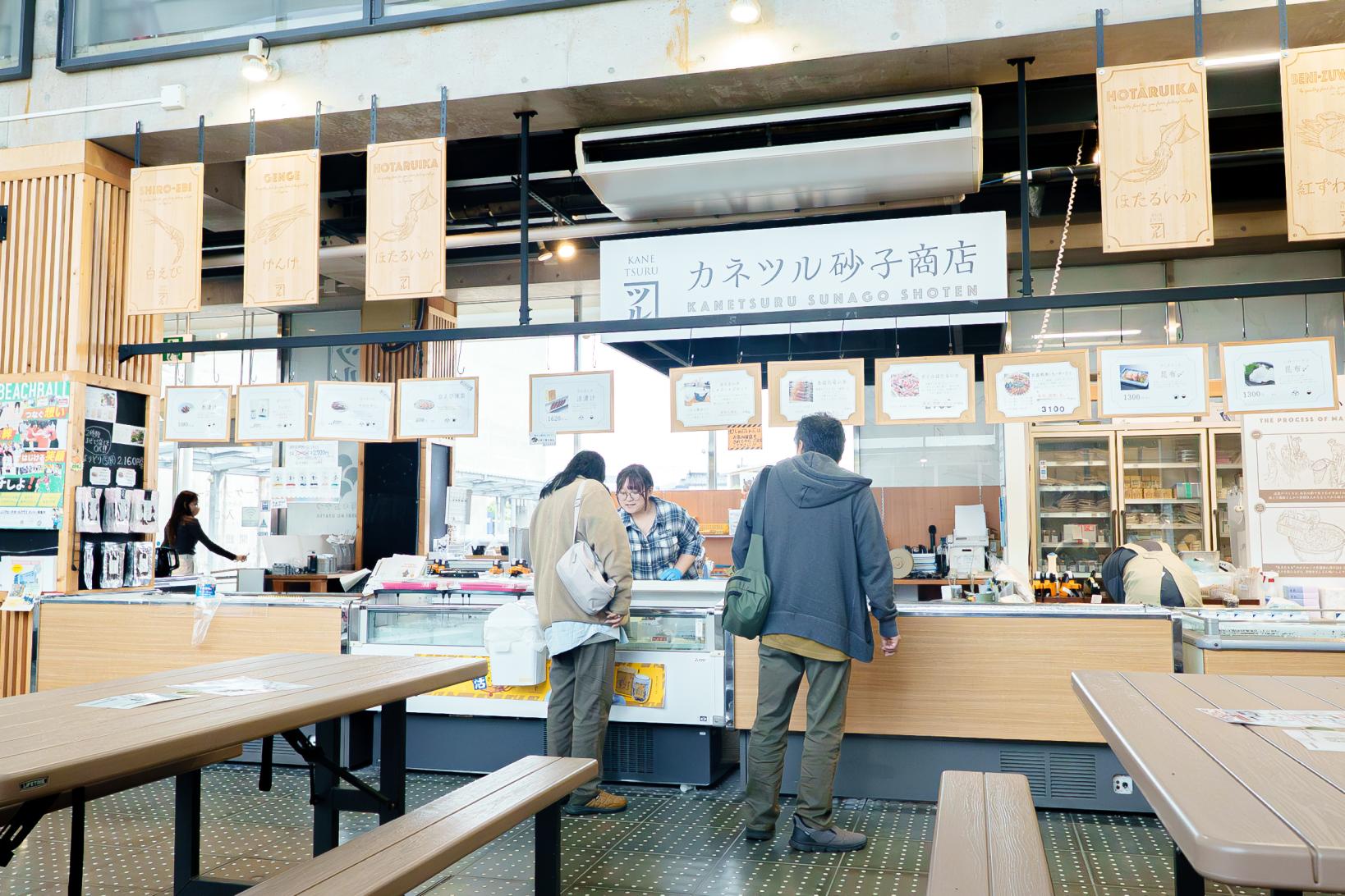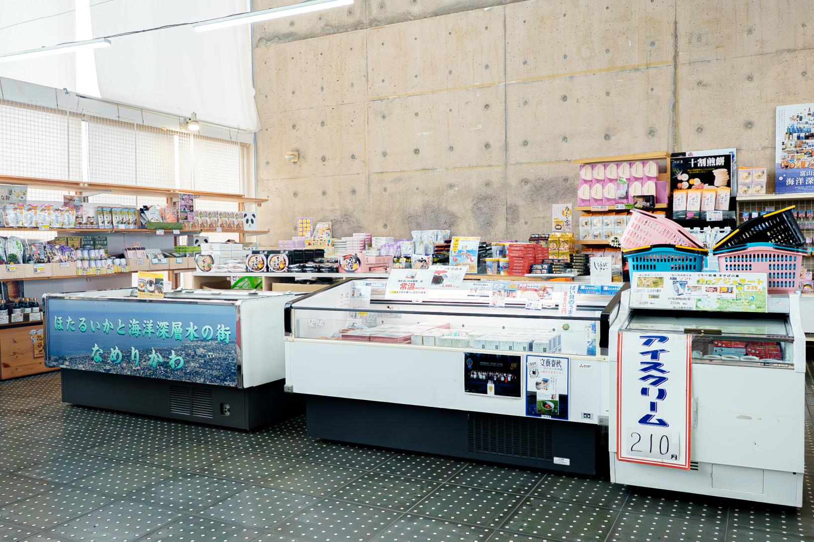 ほたるいかミュージアムの隣には、「道の駅ウェーブパークなめりかわ」が併設されており、お土産コーナーやイートインコーナーがあります!
