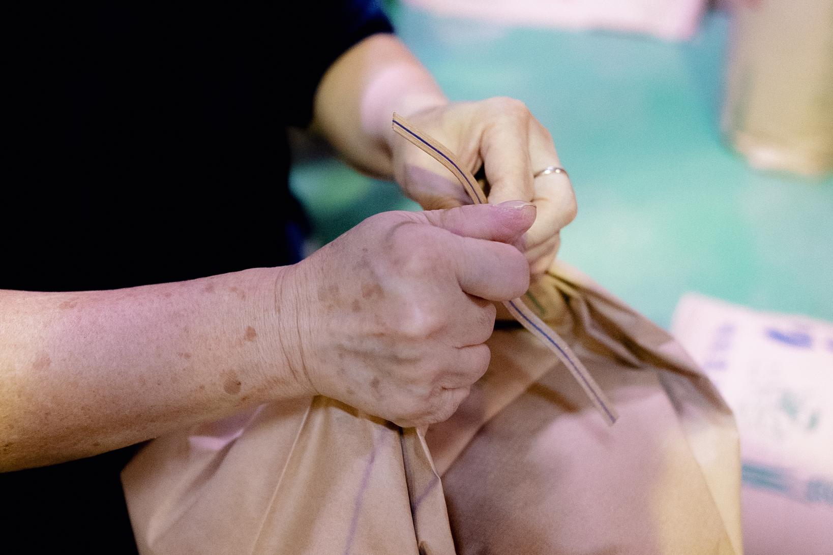 袋詰めをした後は積み重ねていきますが、これは綺麗に管理をしたいという生産者さんのこだわりです。
