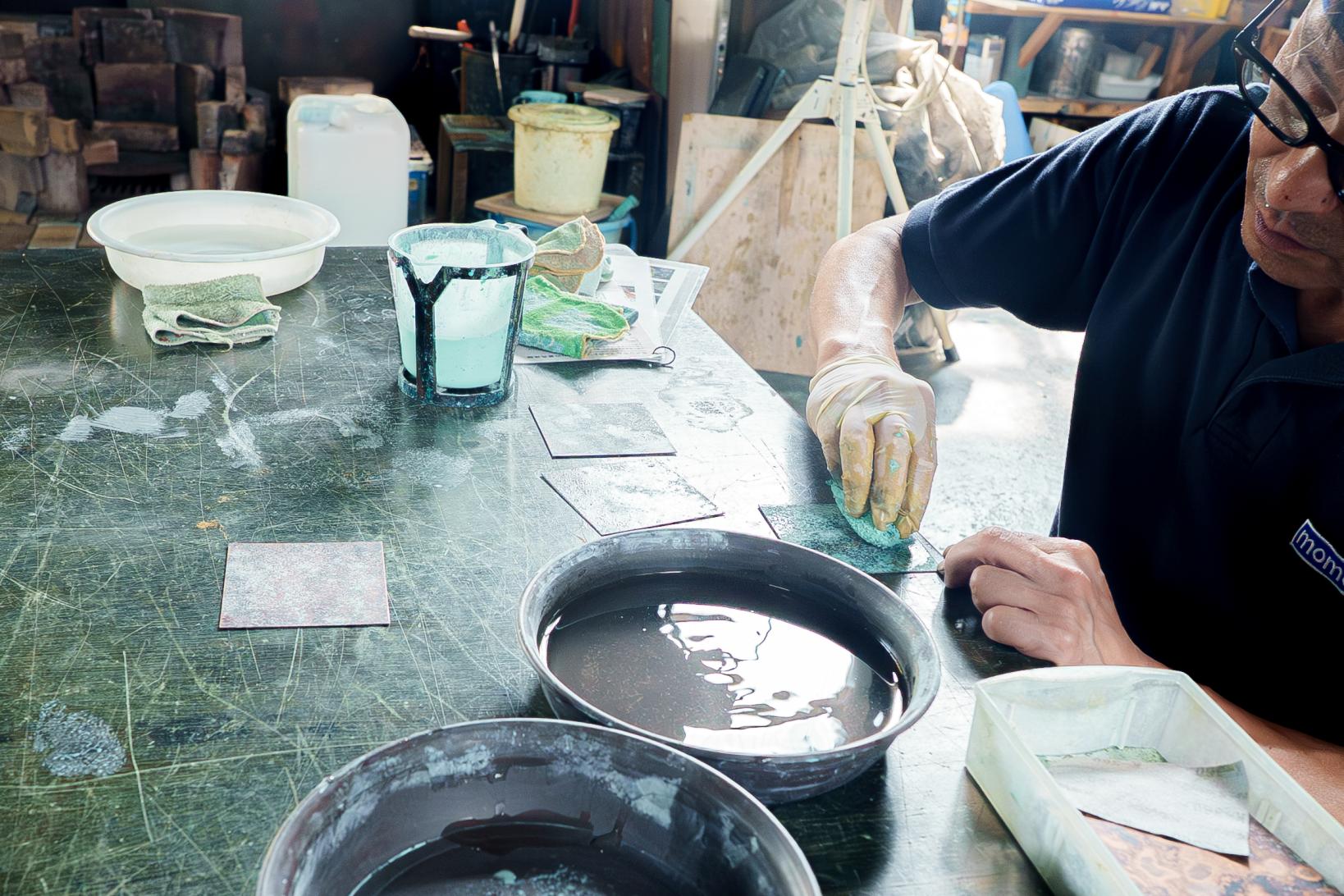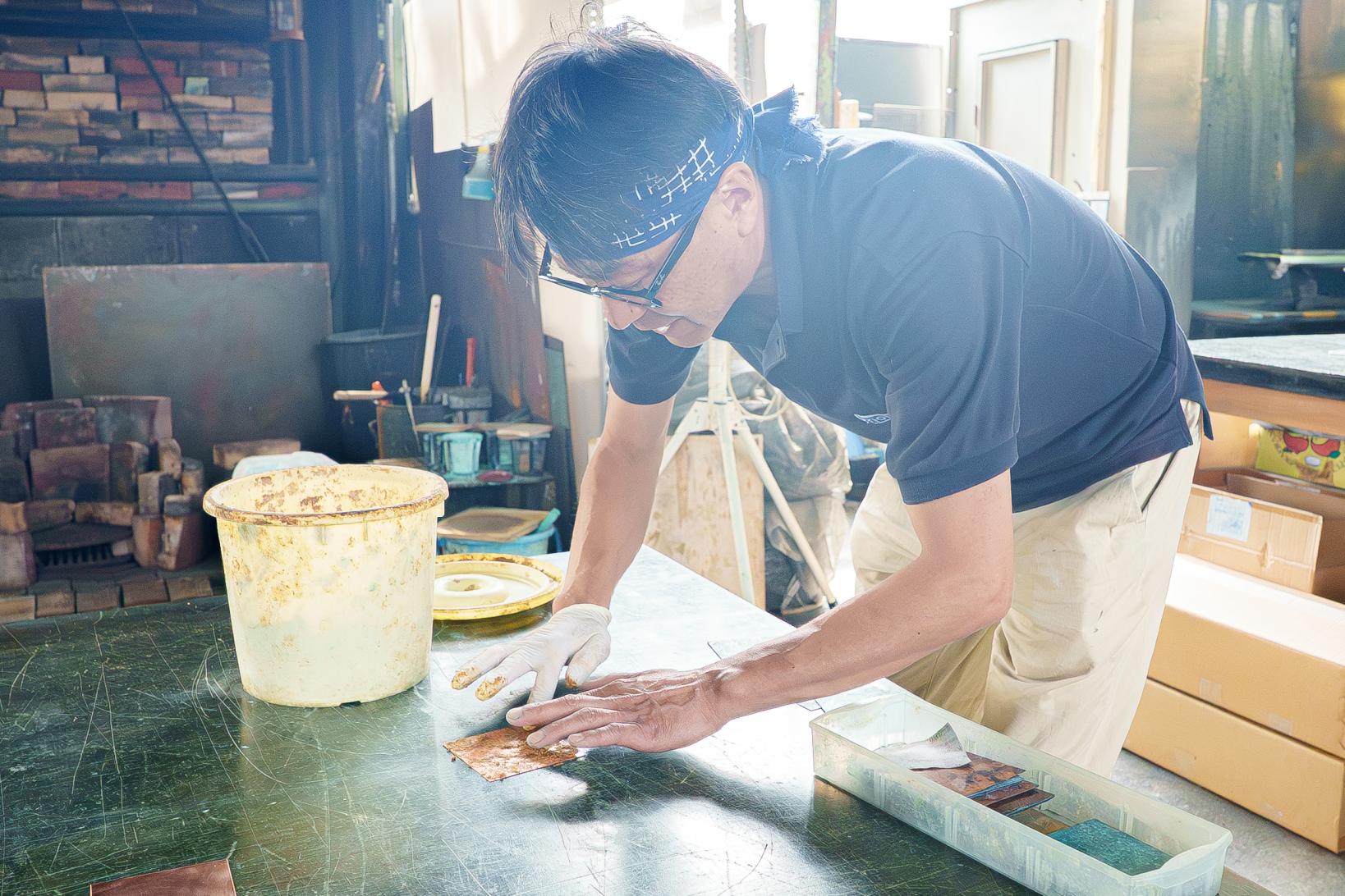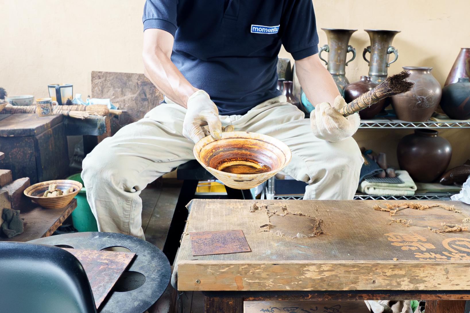 「モメンタムファクトリー・Orii」は、1950年に「折井着色所」として創業され、美術工芸品や仏具をはじめとする様々な銅製品の着色を手がけられています。