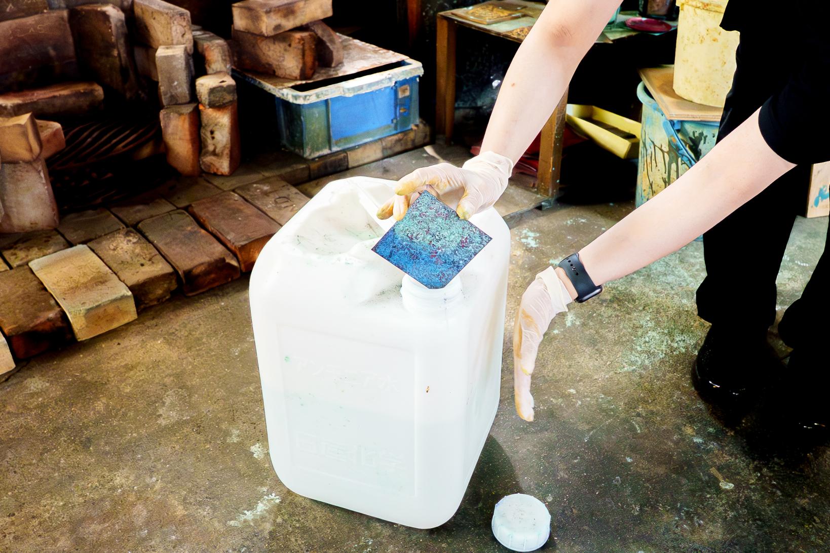 焼いた銅板を水で冷やすと模様が出てきて、どのような模様になるのか、とてもワクワクしました!