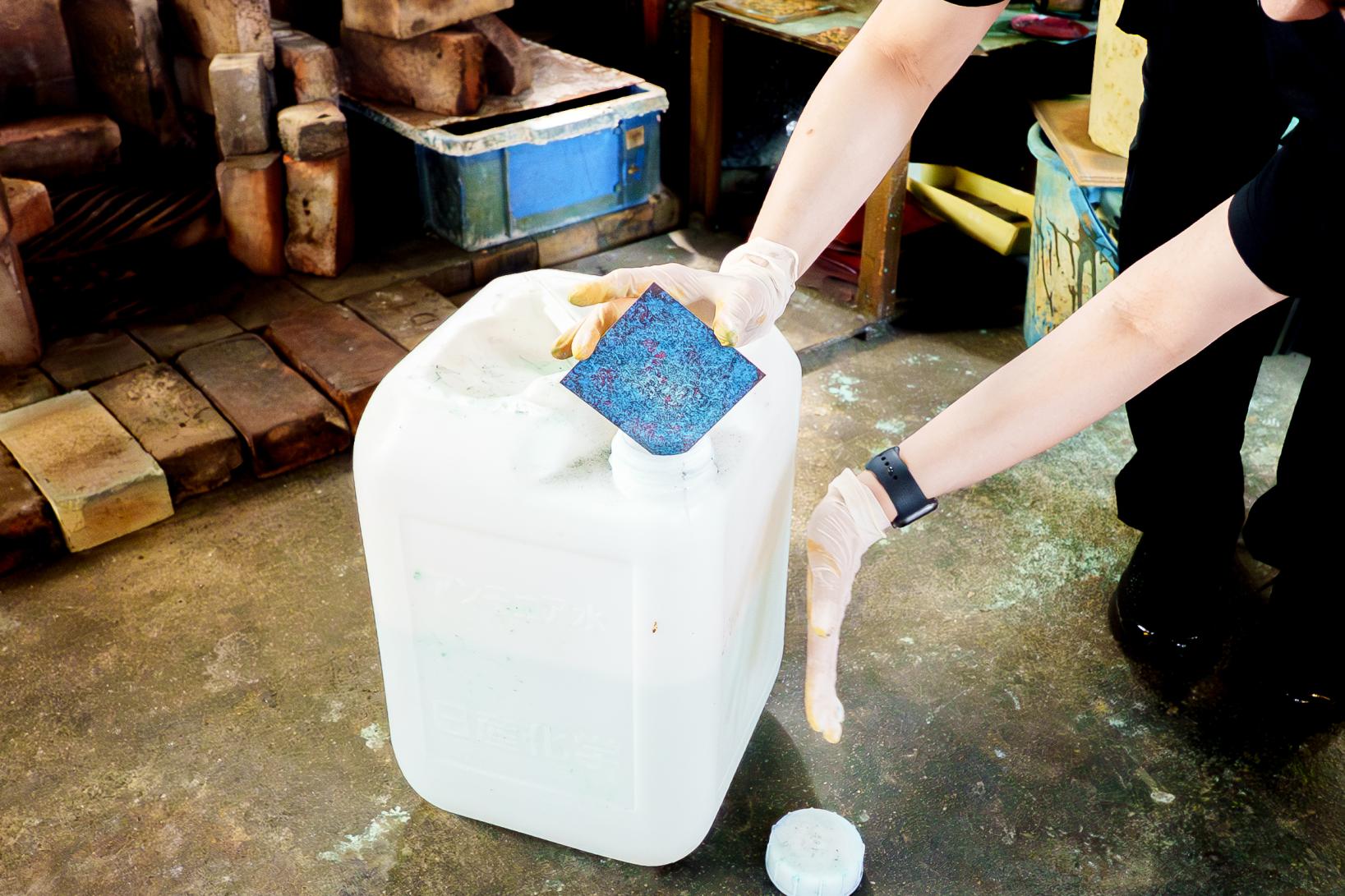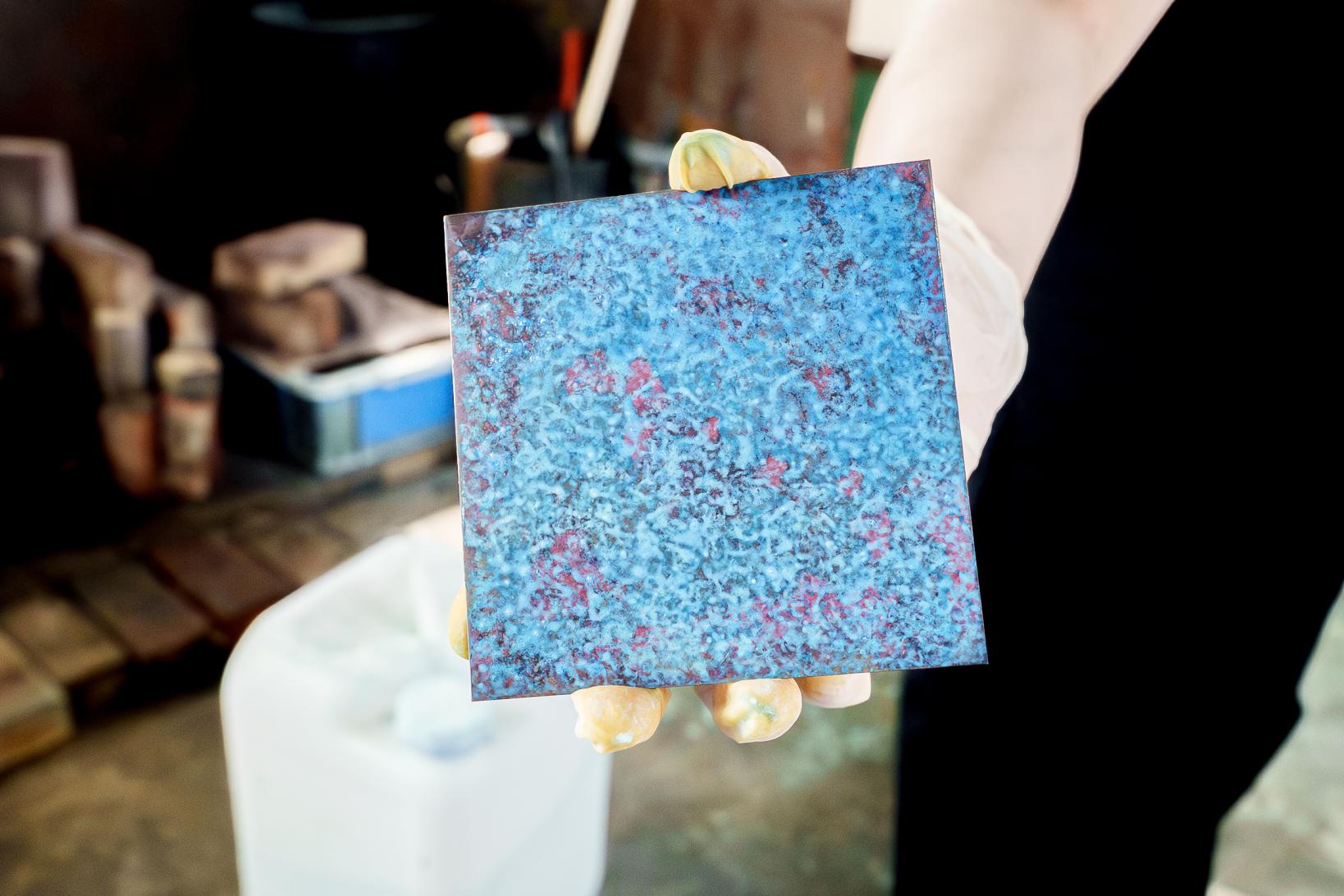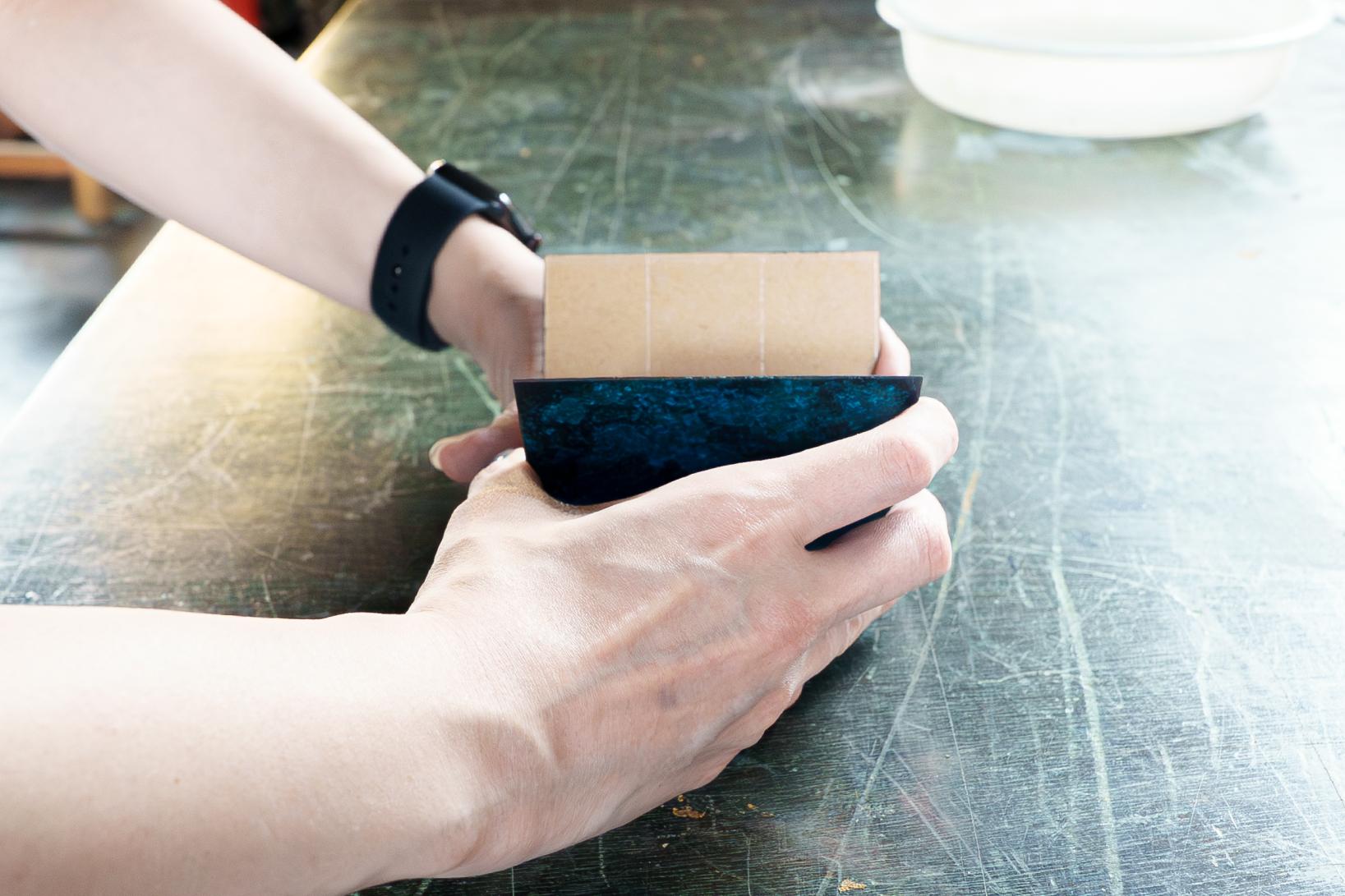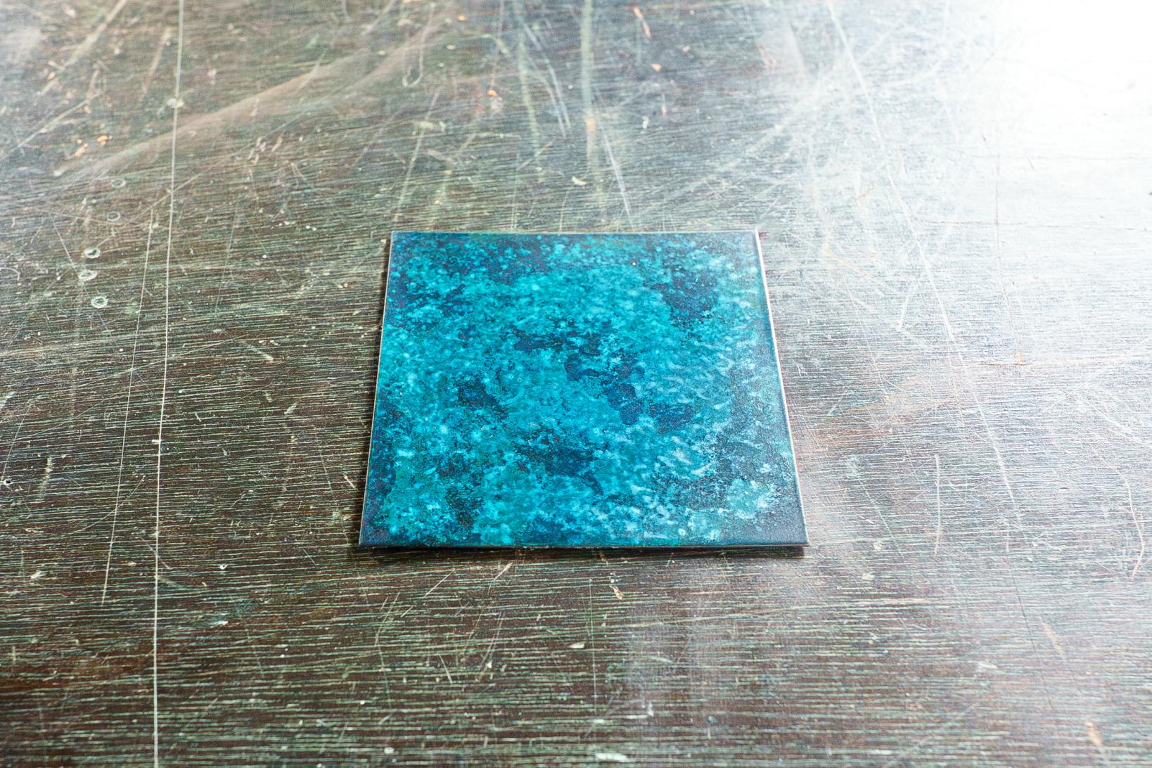 コーティングが完了し、出来上がった銅板に底を貼り付け、世界にひとつだけのOriiブルーコースターが完成しました!