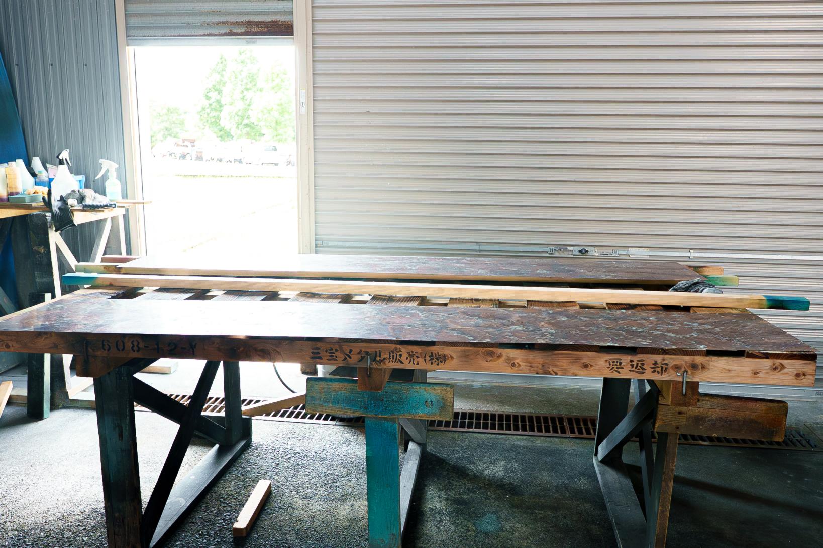 工場横には、Oriiの製品がずらりと並ぶショールームがあり、入り口の扉もOriiブルーで、入る前からテンションが上がります!