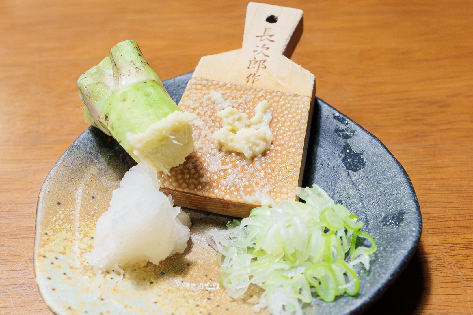 ざる蕎麦を注文すると、まず初めにこだわりの安曇野産生山葵が運ばれてきました!