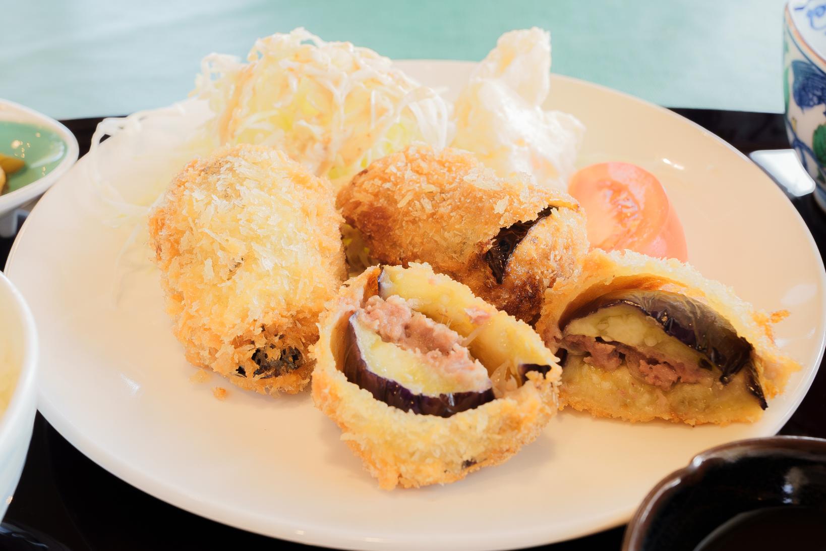 この日の日替わりランチは、茄子と挽肉の挟み揚げでした!