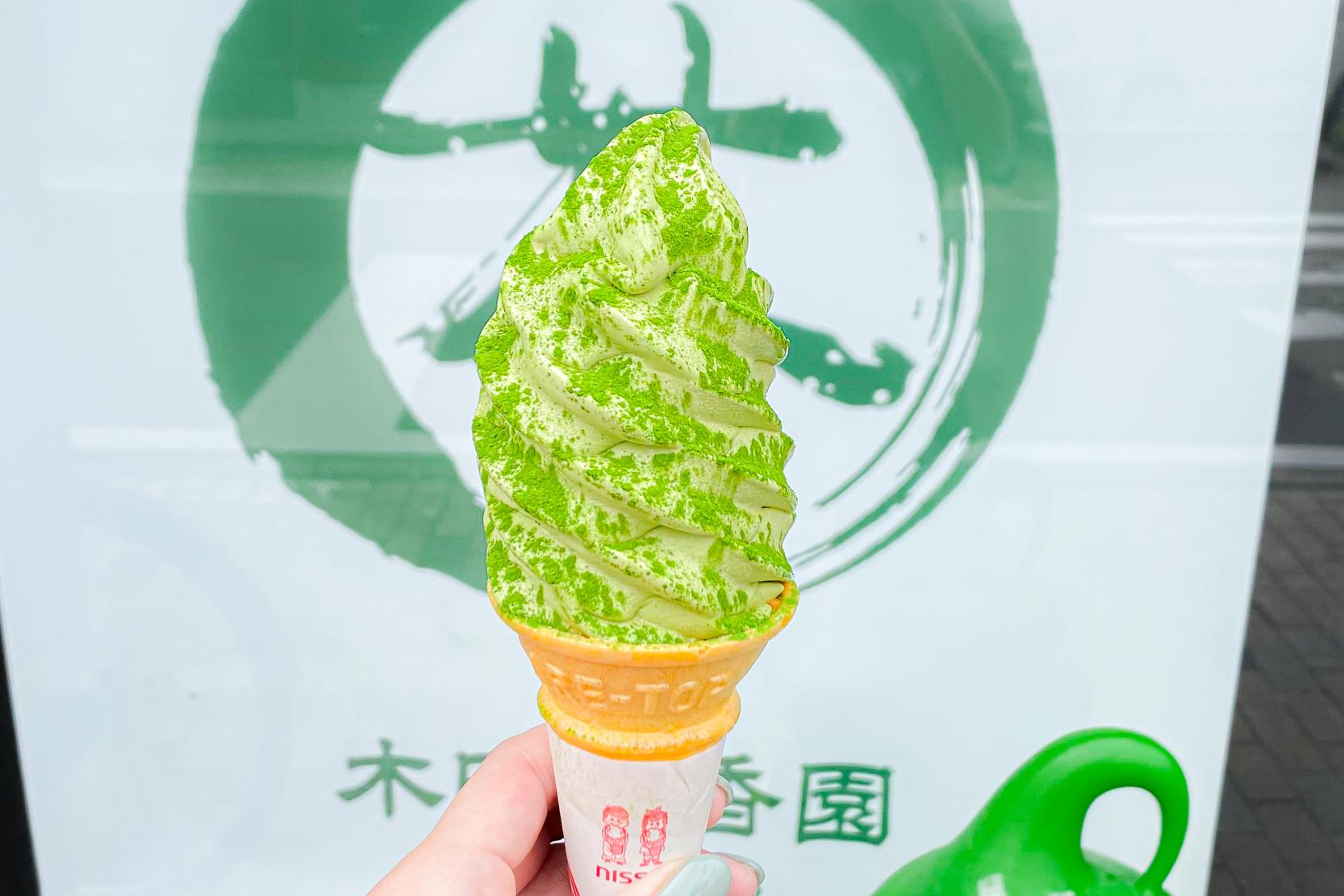 高岡大仏の斜め前にお店を構える「木田芳香園」の抹茶ソフトクリームです!