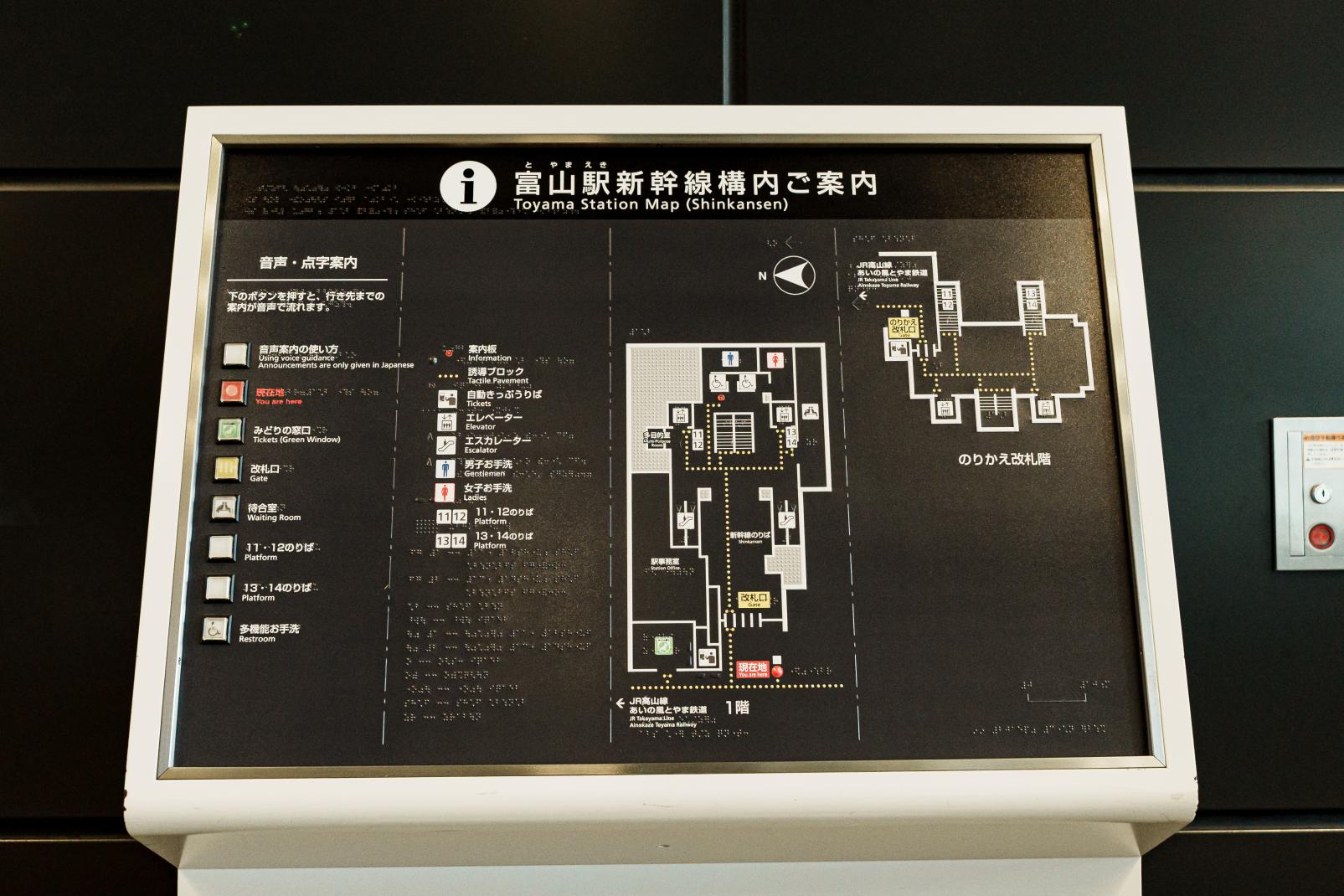 新幹線乗り場改札前に、富山駅新幹線構内の音声、点字案内もあります。