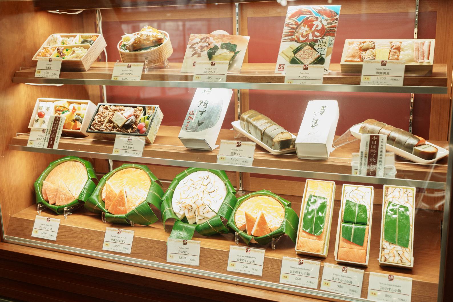 富山駅構内にある「源」では、ますのすしの他に、ぶりのすしやお弁当、おにぎりなどが販売されています。
