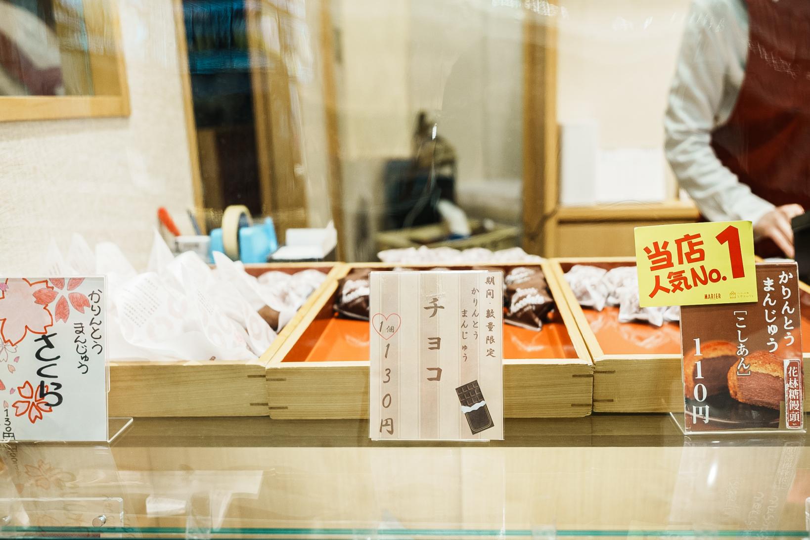 この日のかりんとう饅頭のラインナップは、人気No.1のこしあんと季節限定のチョコ味、さくら味の三種類でした。