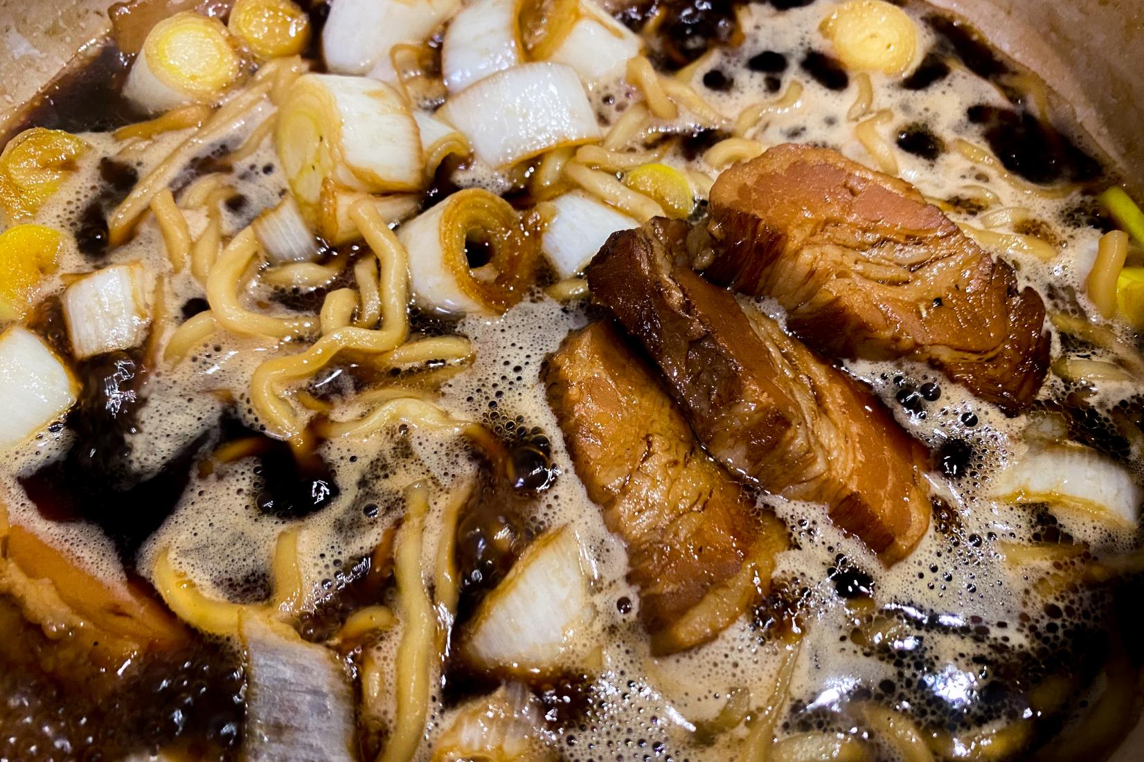 お土産用なので、もちろんお店の味とまではいかないですが、極太麺が濃厚醤油のスープを吸い富山ブラックを感じることができます!