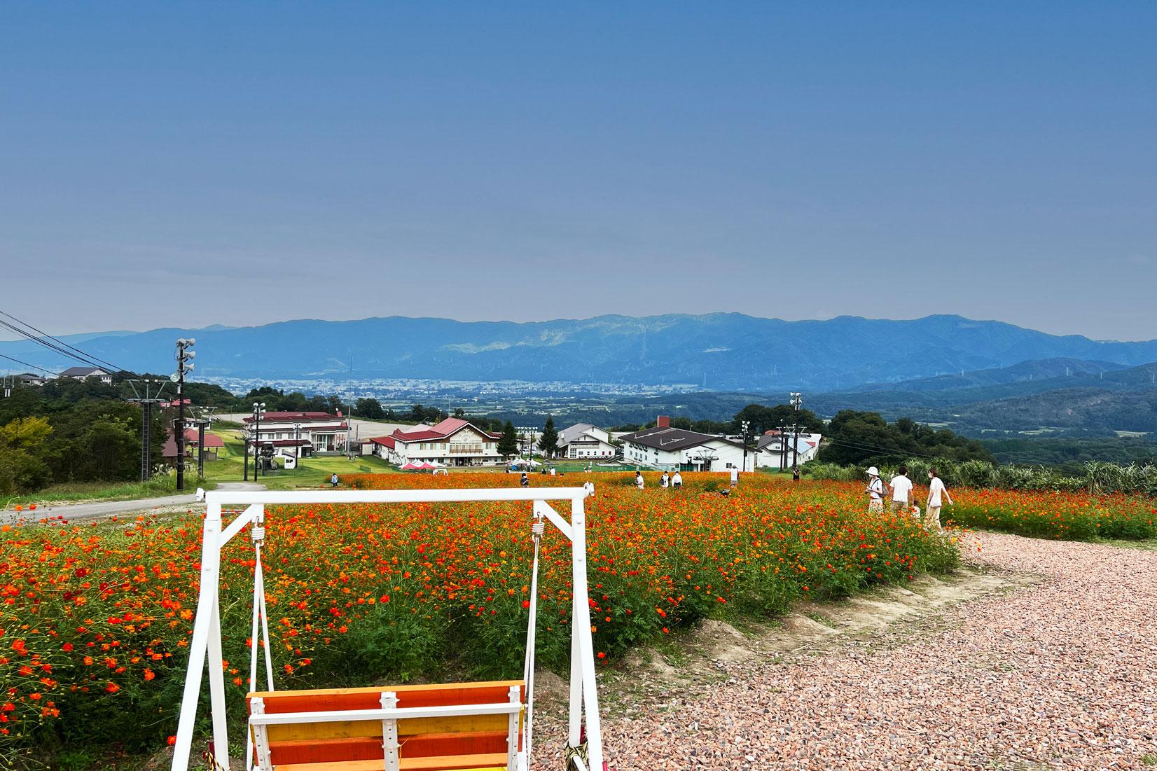 キバナコスモスまつりの期間中の月・水・土・日曜日は、ゴンドラが運行していて山頂まで行くことができます。山頂からの景色は格別です。