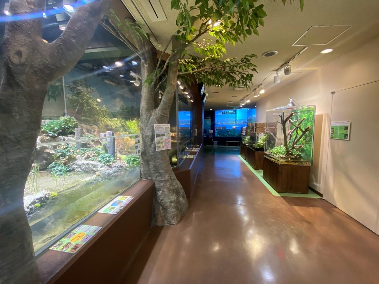 水辺の生き物のおもしろさを来館者の方に伝えるため、工夫を凝らした展示や、手書きの説明書が置かれているのも魅力のひとつです。