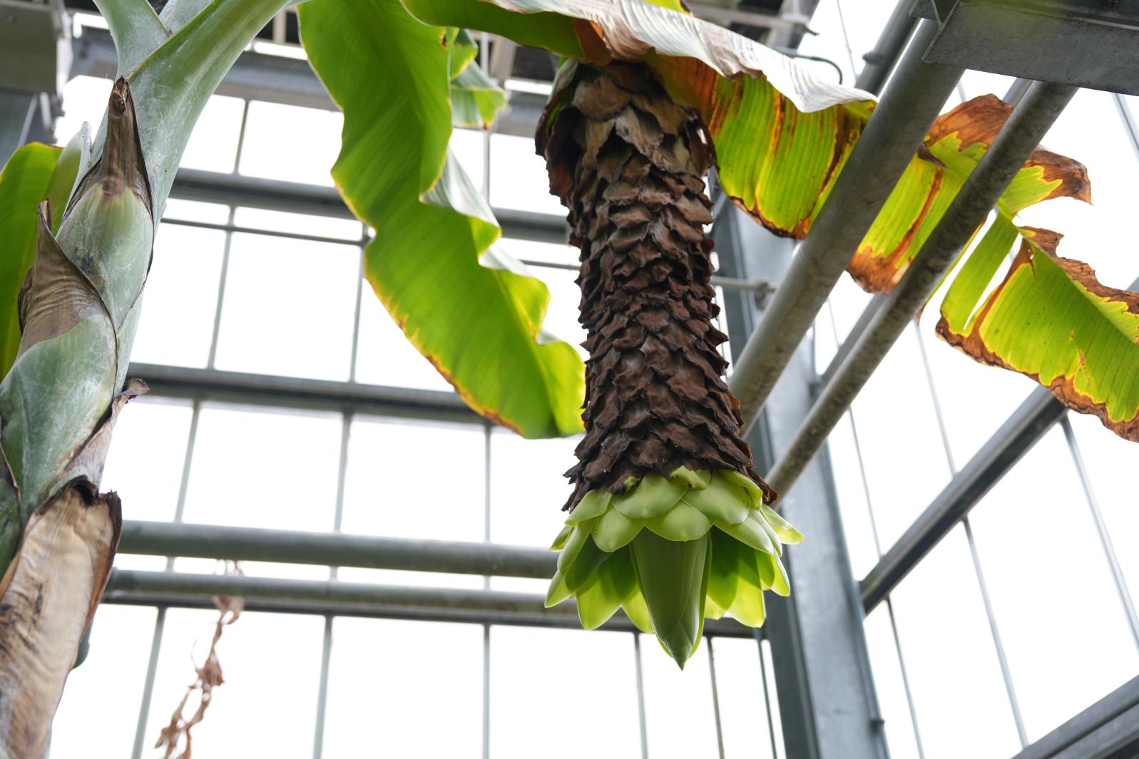また、隣接する「熱帯・亜熱帯植物温室」では、雲南省南省の気候に適応した植物が数多く育てられており、一生に一度だけ巨大な花を咲かせる「スノーバナナ」など、珍しい植物たちとの出会いも楽しめます。「スノーバナナ」は、2025年5月現在、見ごろが続いており、開花が終わると枯れてしまうため、今しか見られない非常に貴重な植物です。