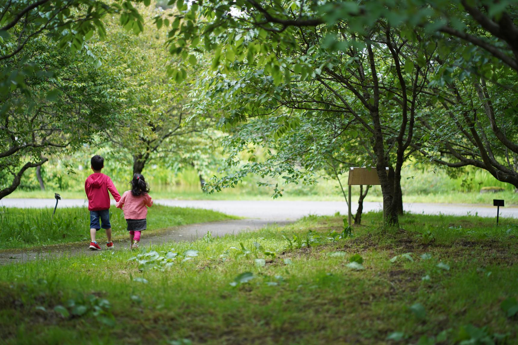 桜の季節が過ぎると、植物園はやわらかな新緑から、やがて濃い深緑へと彩りが変わっていきます。木々に包まれた園内には爽やかな風が吹き抜け、初夏の陽ざしの中でも、心地よい時間を過ごすことができます。