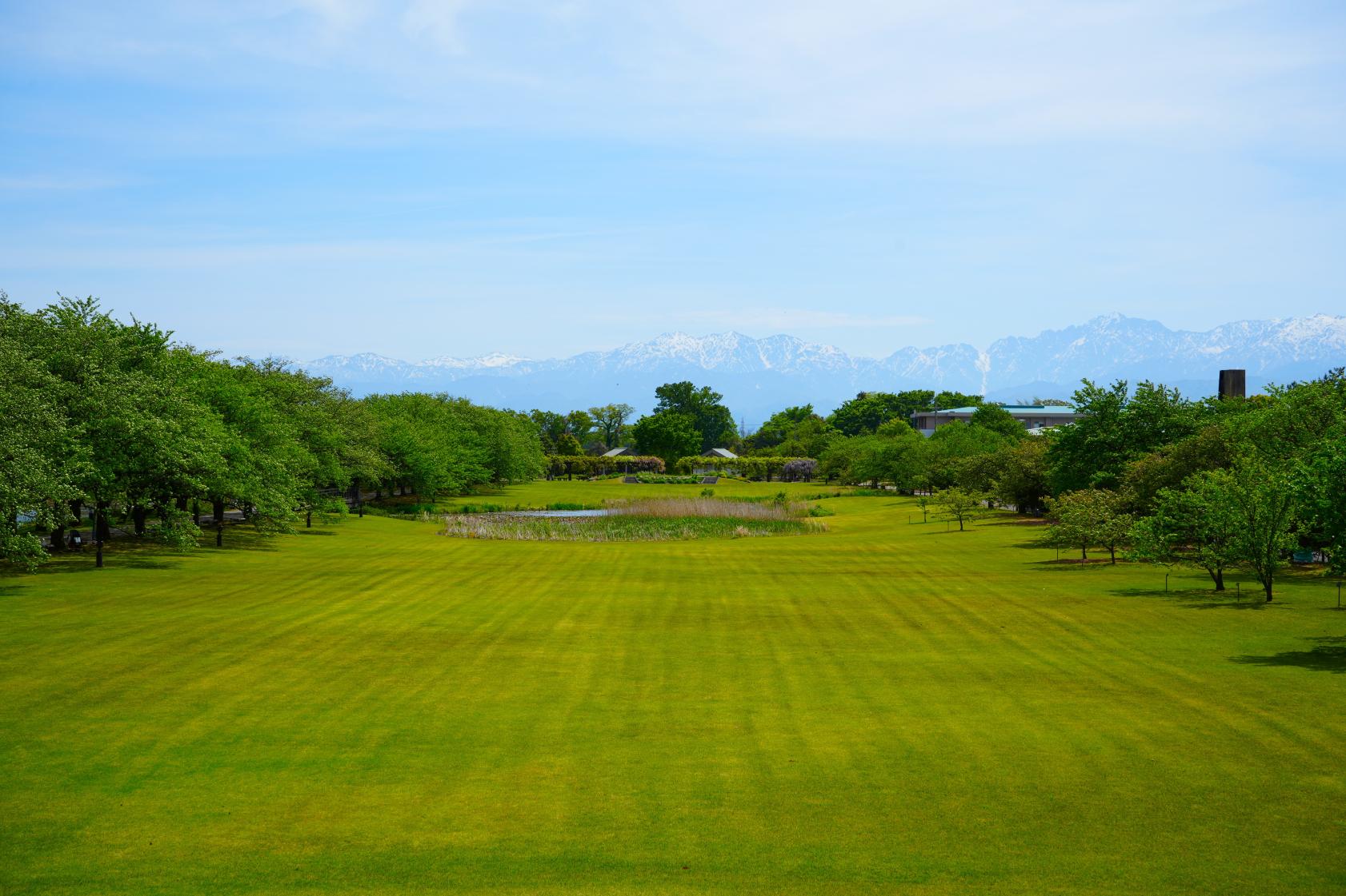 特に春は、県内最多となる140種類もの桜を観賞することができます。桜と菜の花のコラボレーション、夜桜も映える「さくらまつり」など、多くの方々で賑わう人気スポットです。また、夏は、スイレンやハス、秋は紅葉など、冬も晴れた日の立山連峰の絶景を楽しめ、年間を通して開かれるイベントも多く、年中楽しめる「植物園」です。