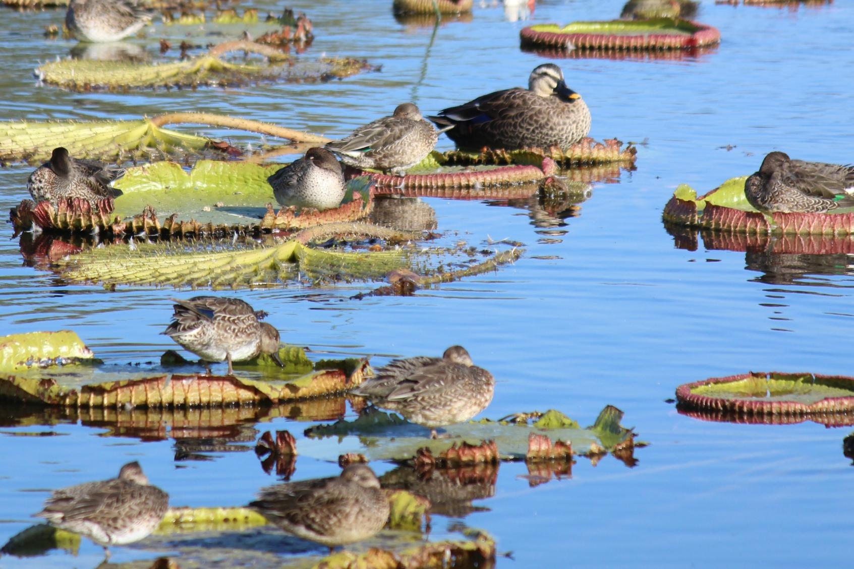 夏休みには、大人気の「オオオニバスに乗ってみよう!」というイベントが開催されます。5月にはまだ小さかった葉も、直径2メートルほどに成長し、約30キロまでの子供が乗ることができるなんて、不思議ですね。北池に広がる「オオオニバス」の大きな葉、青空と白い雲がつくる夏の風景もぜひ見てほしい植物園の絶景の1つです。夏休みもぜひ、植物園に訪れてみてください。