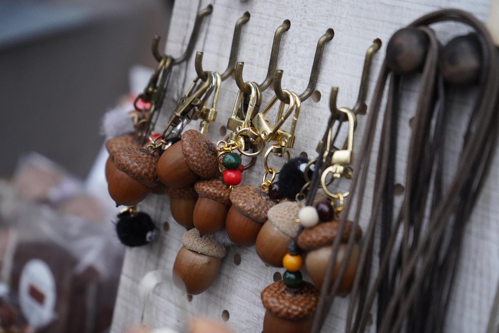 大きなどんぐりのキーホルダーが目に留まり、横には、美味しそうなスイーツがたくさん並べられていました。