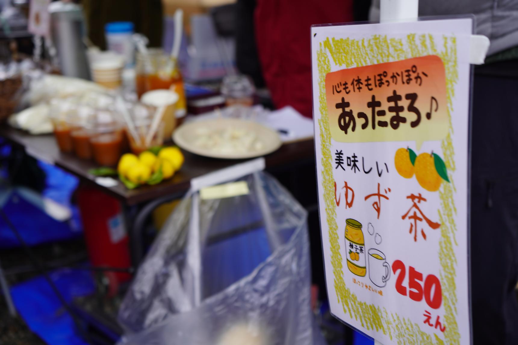 冬はゆず!ゆず茶で温まりました!他に、暖かいスープやホットコーヒーなどの販売もありました。