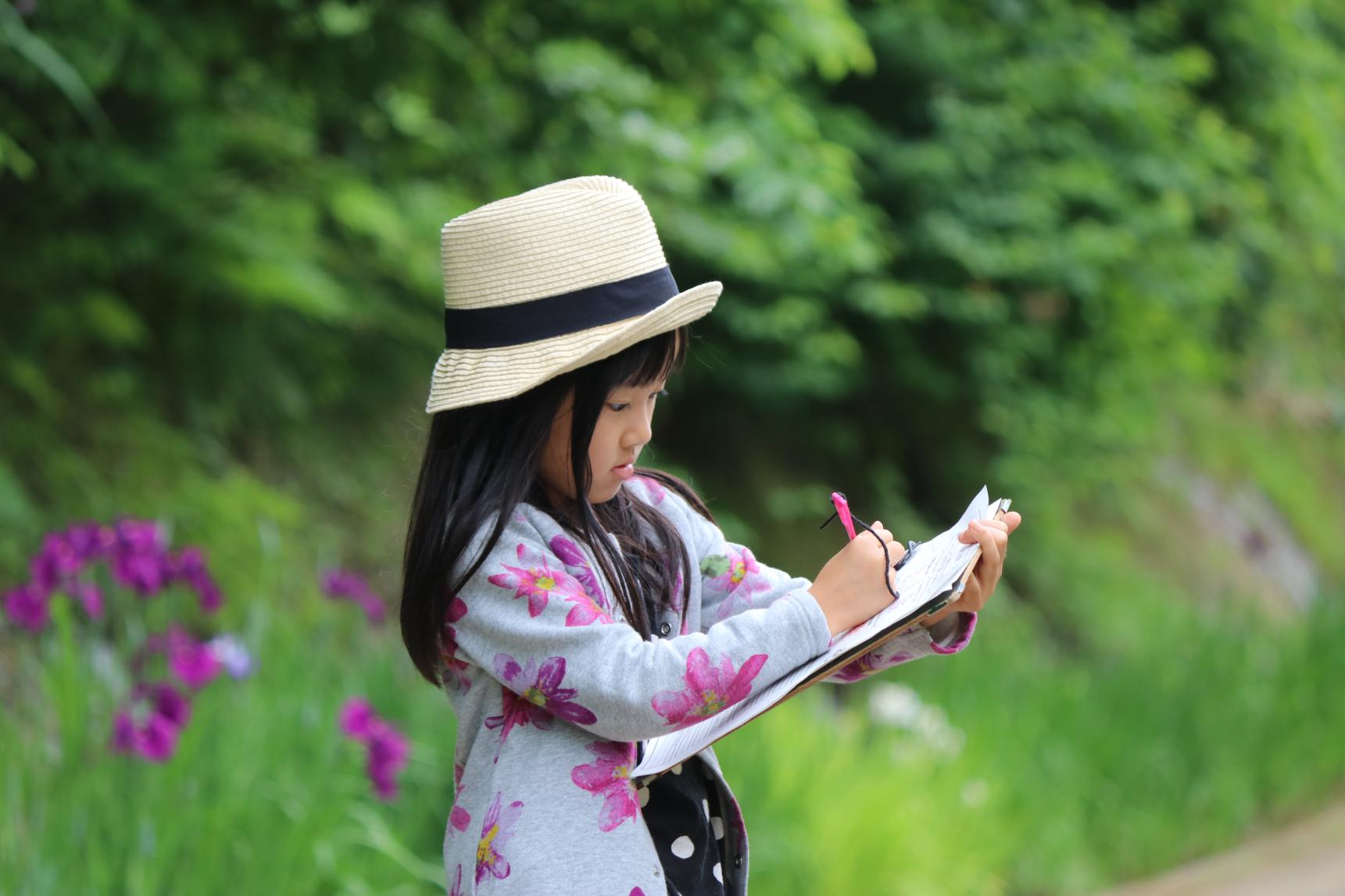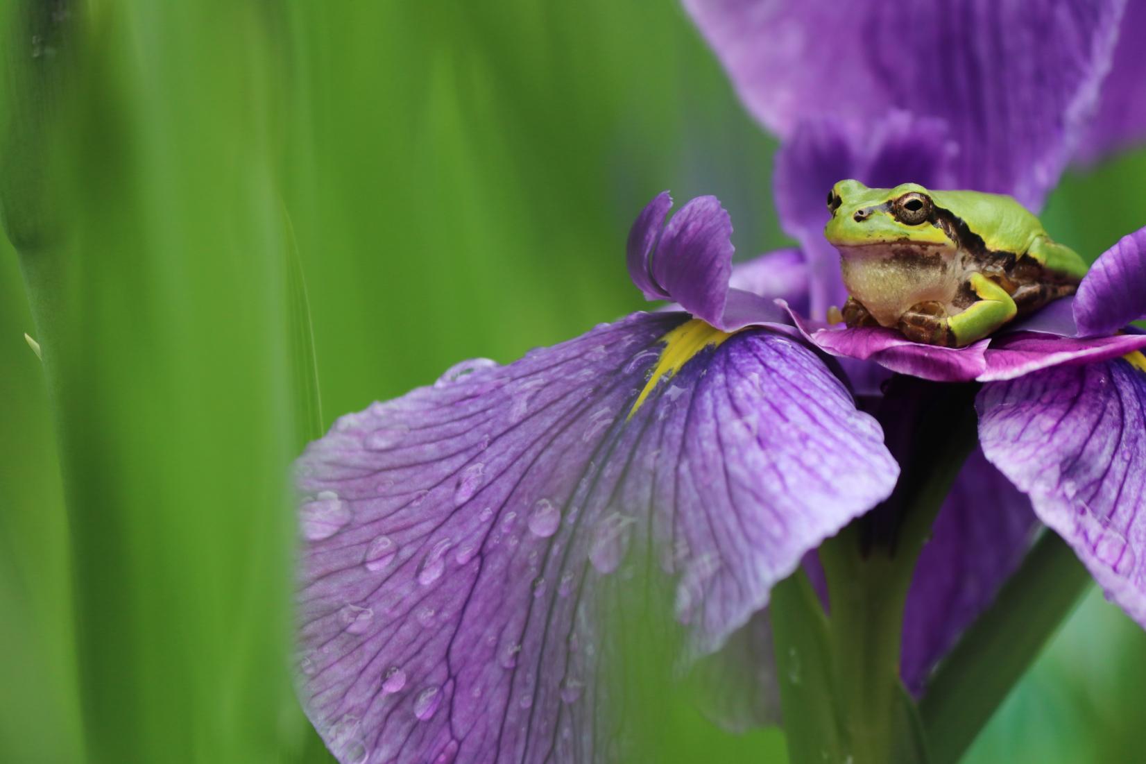 自然に囲まれた花しょうぶ園には、数多くの生き物がいました。晴れた日は、チョウチョウがたくさん飛び交い、雨の日は、カエルやカタツムリに出会うことが出来ました。花しょうぶ1本1本にもぜひ、注目してみてください。毎年訪れていますが、子供たちは、生き物を見つけてお散歩することがとても楽しみになっています。