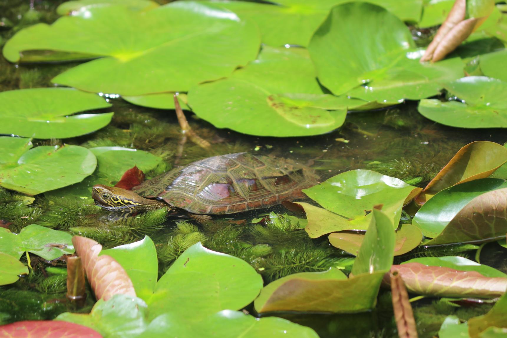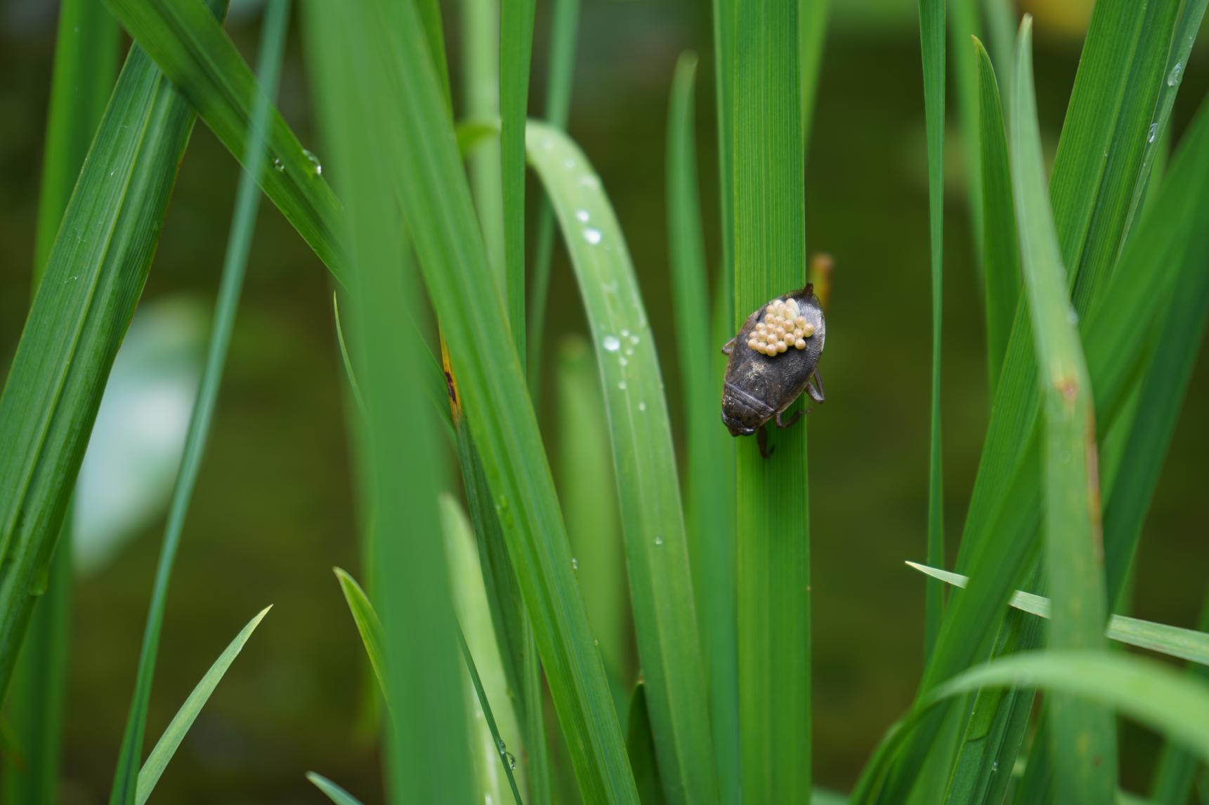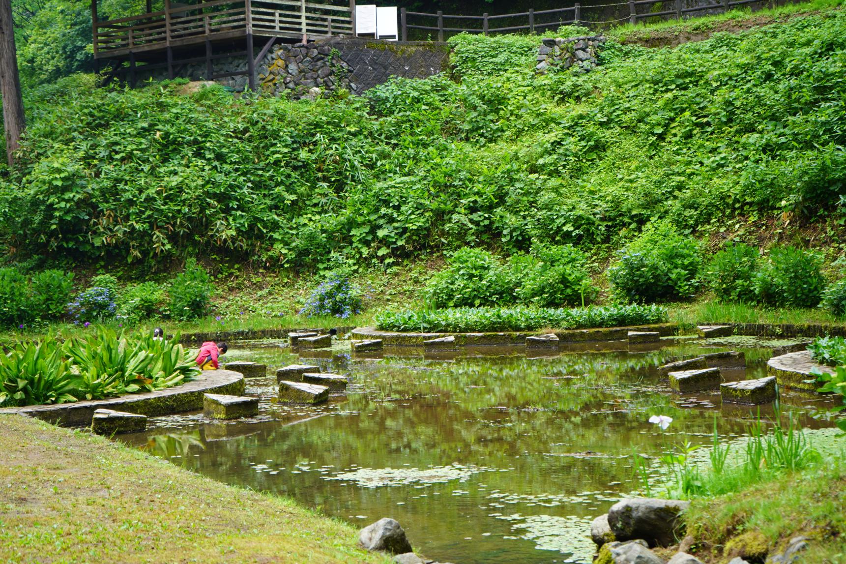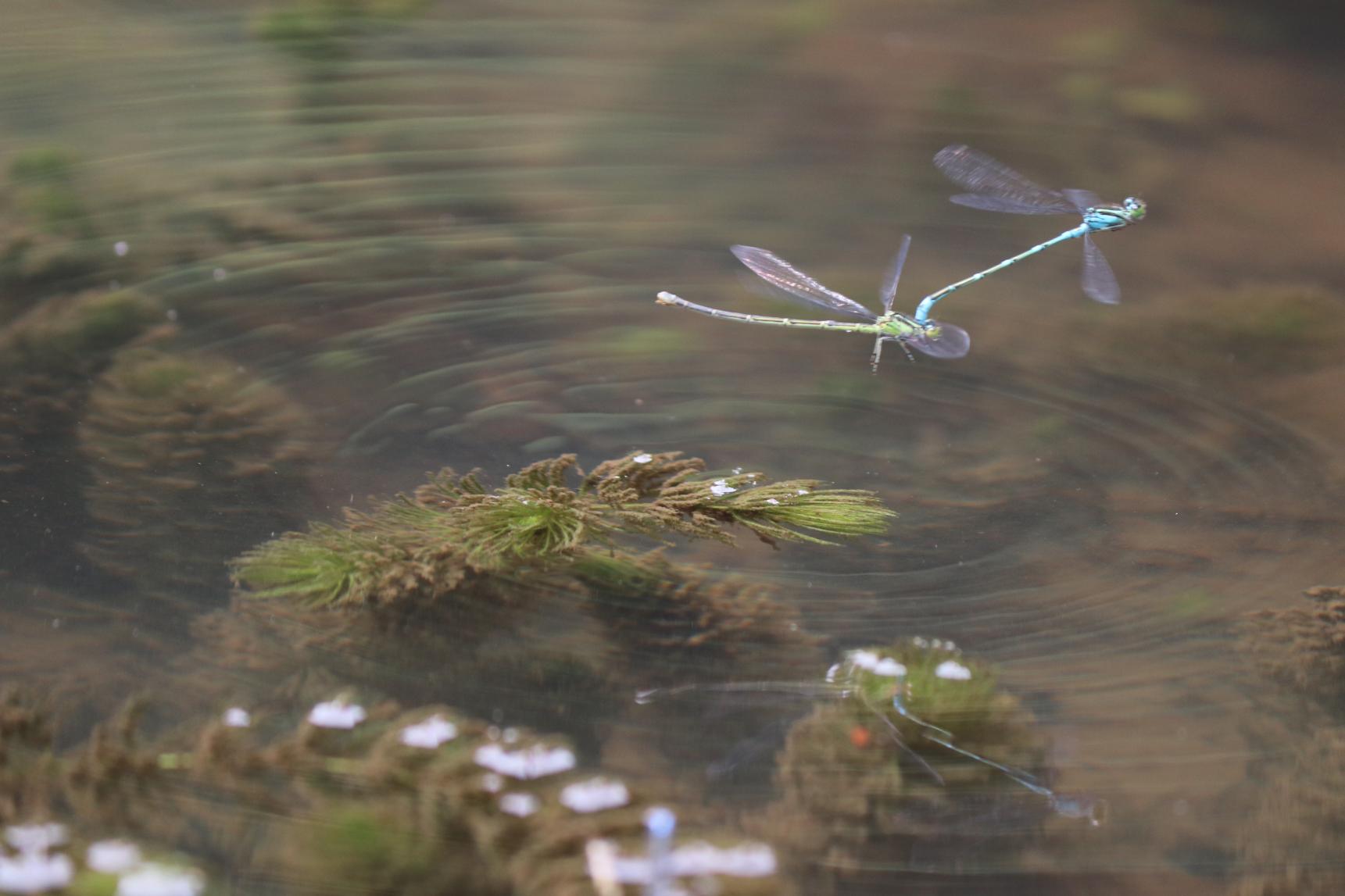 花しょうぶ園の中間地点ほどにある小さな池。ここでは、たくさんの生き物を発見できます。