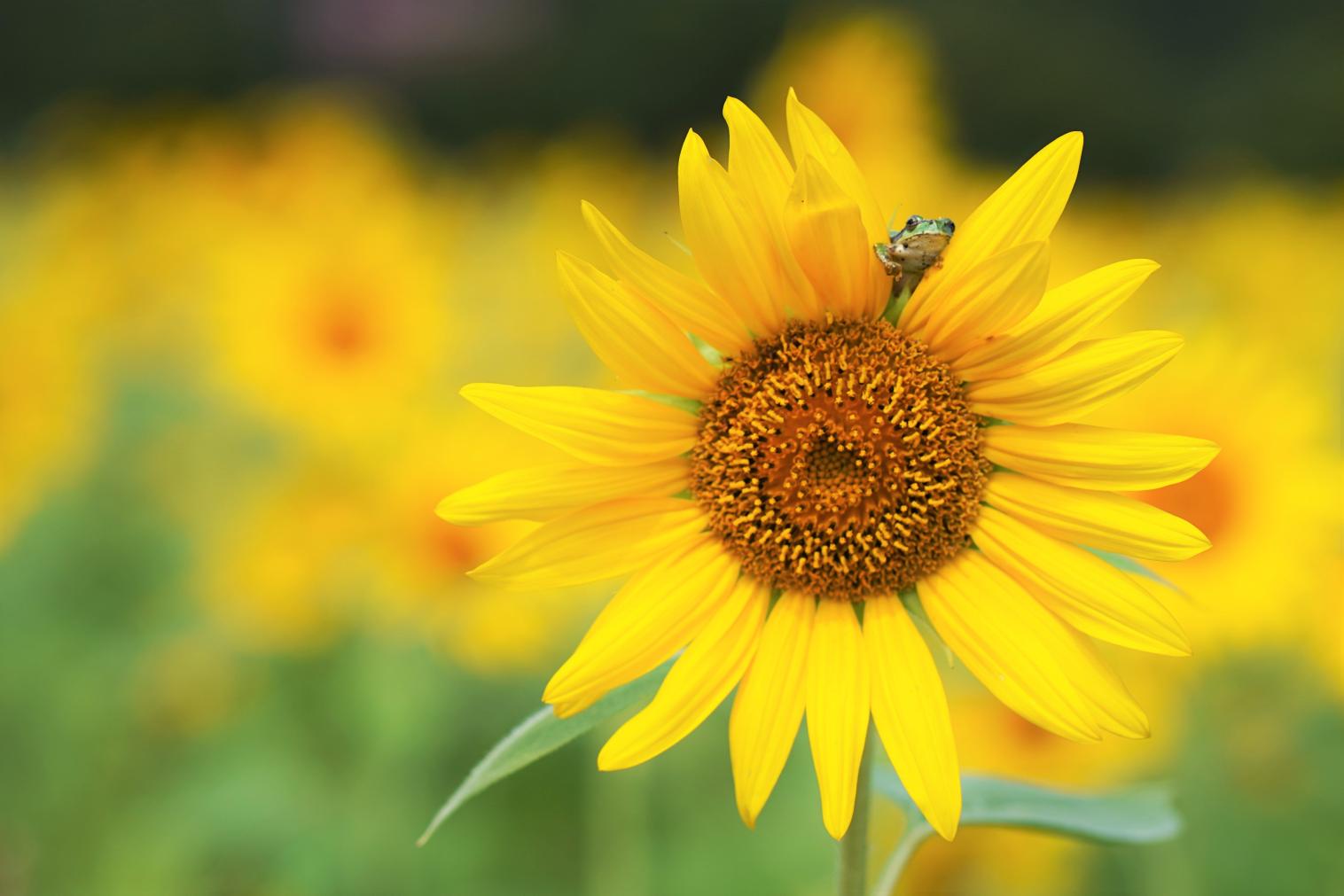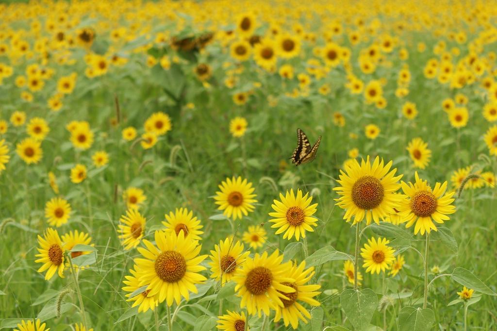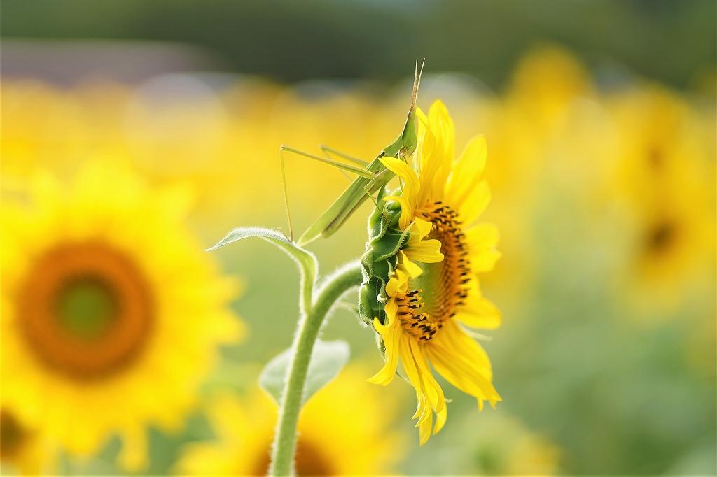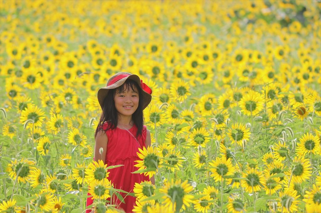 ひまわりに囲まれた写真や昆虫と一緒に笑顔の写真も撮ることが出来るひまわり畑です。望遠レンズで圧縮し撮る方法、展望台から子供たちとひまわりを撮る方法などがあります。思い出になる1枚を残してください。